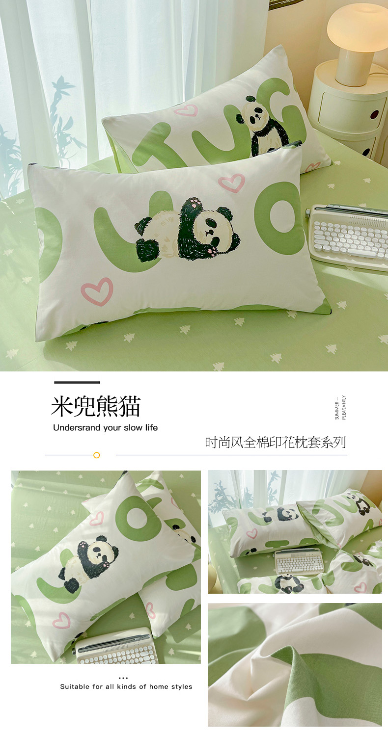 倾慕家纺 2024新款时尚风全棉13070亲肤印花系列单枕套 米兜熊猫