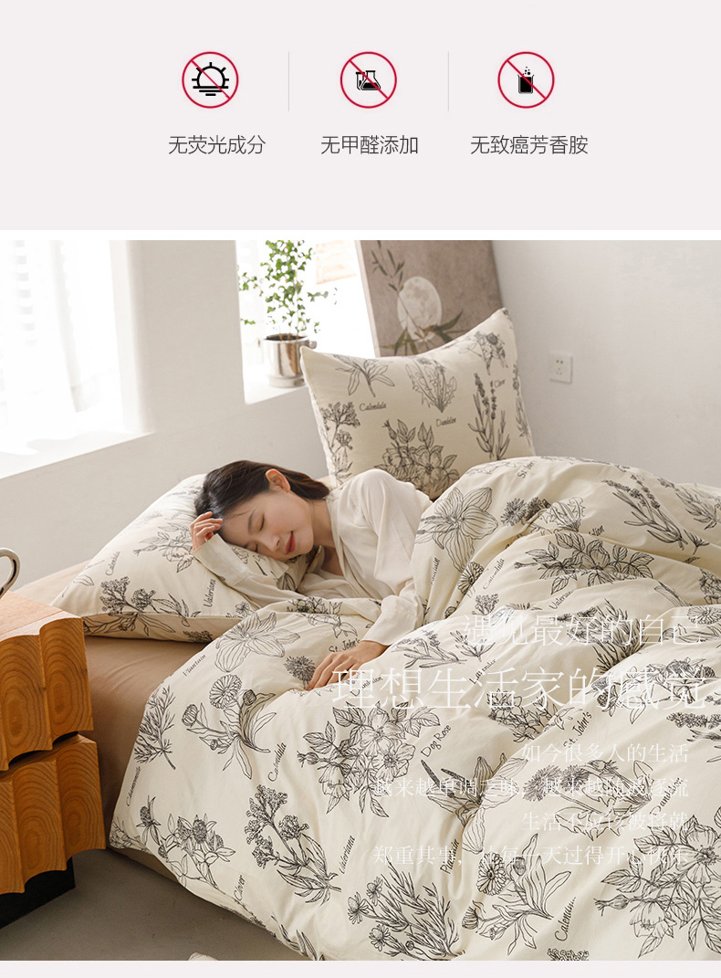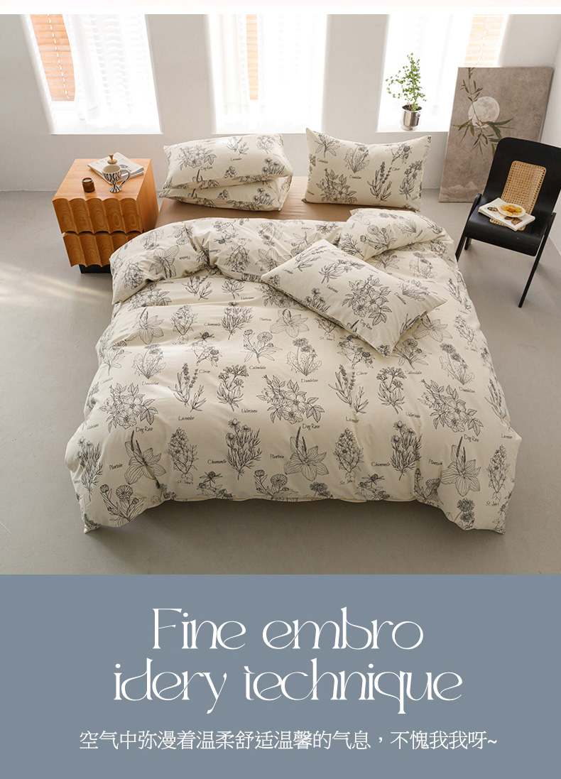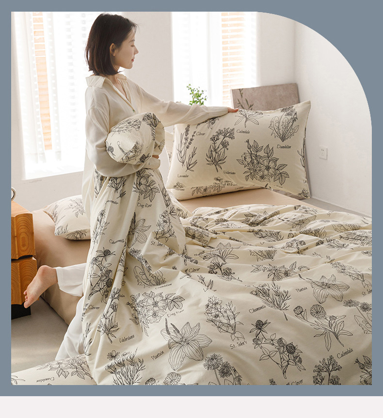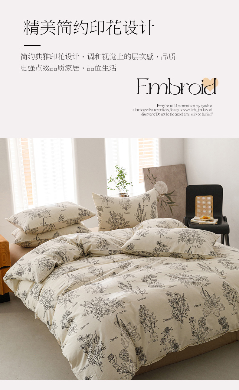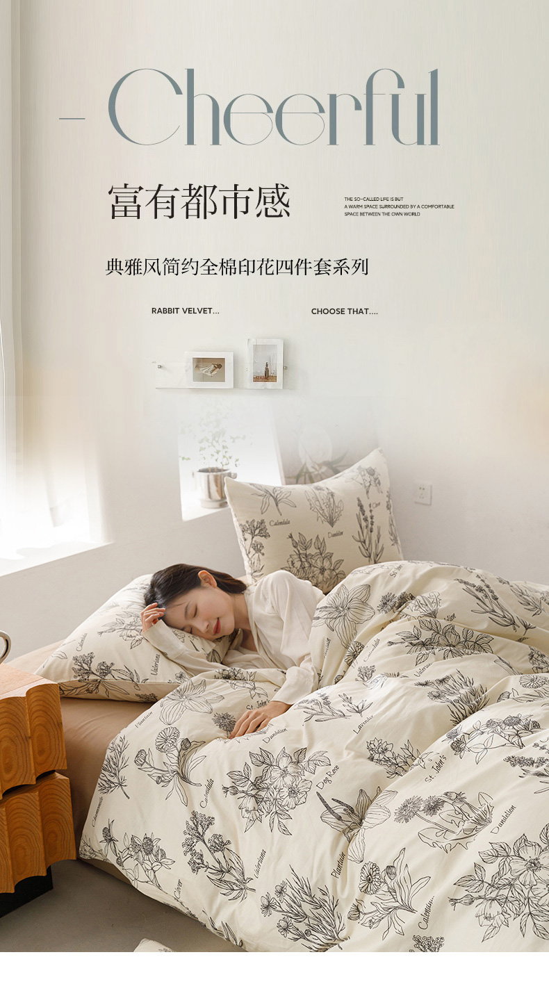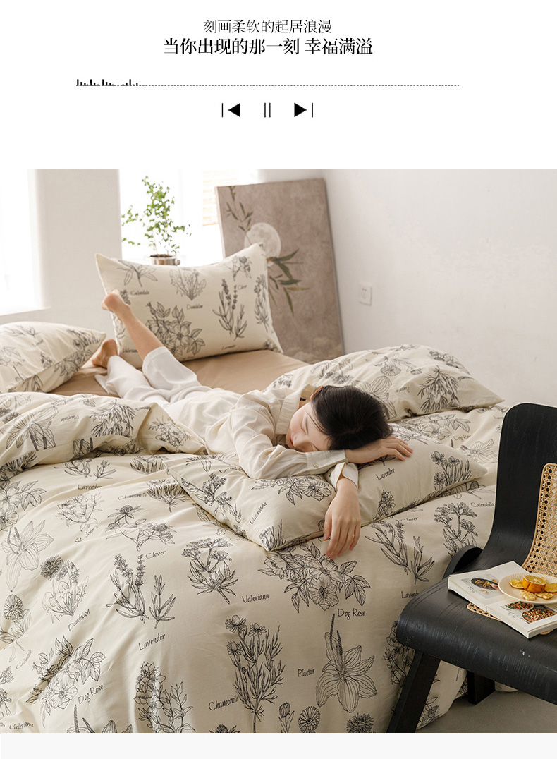 商品名称:倾慕家纺 2024新款典雅风全棉13370简约印花系列四件套 暮秋