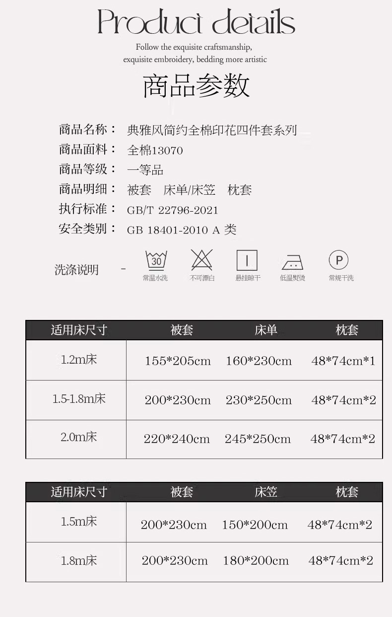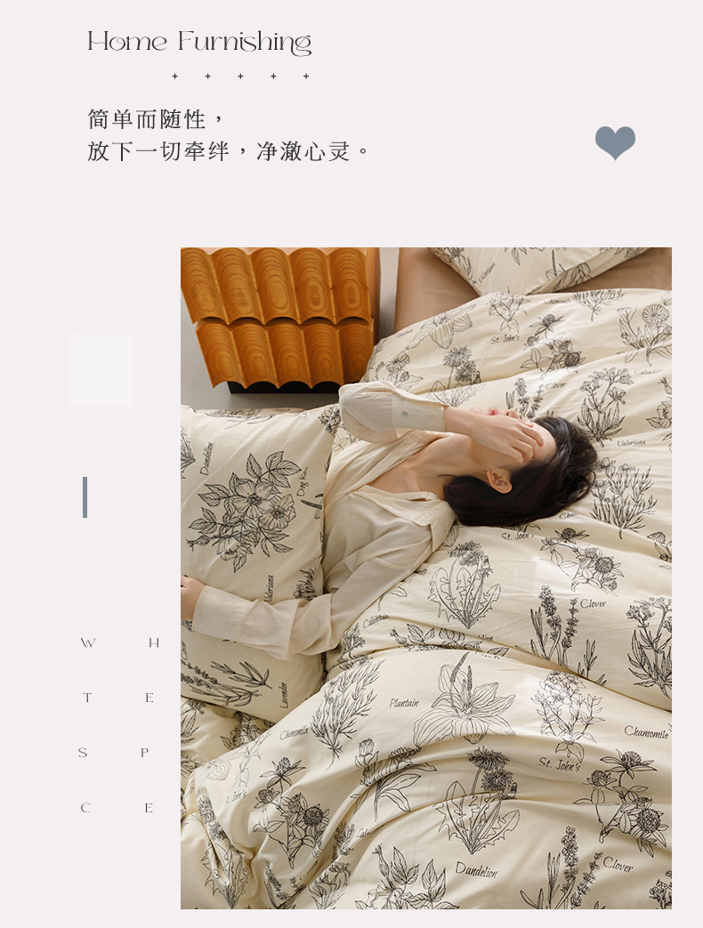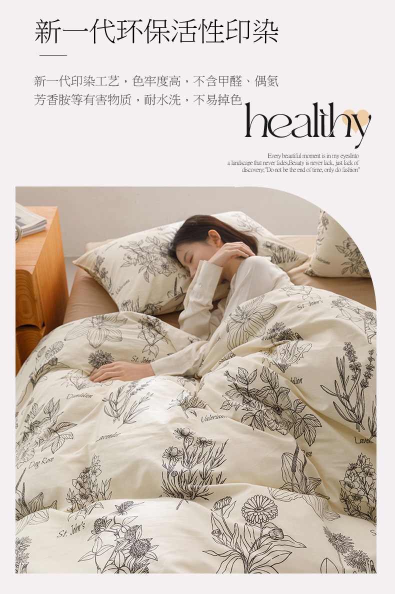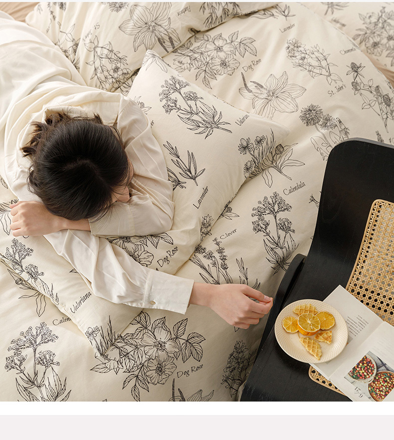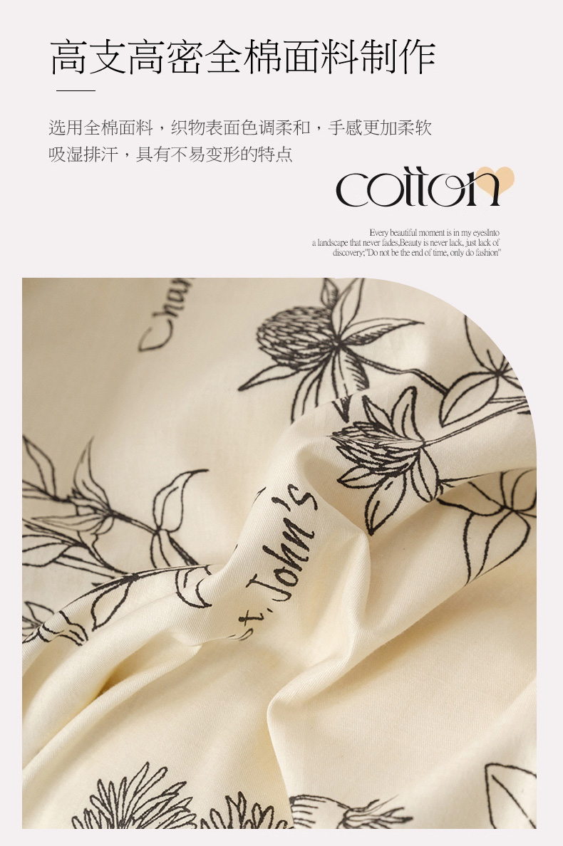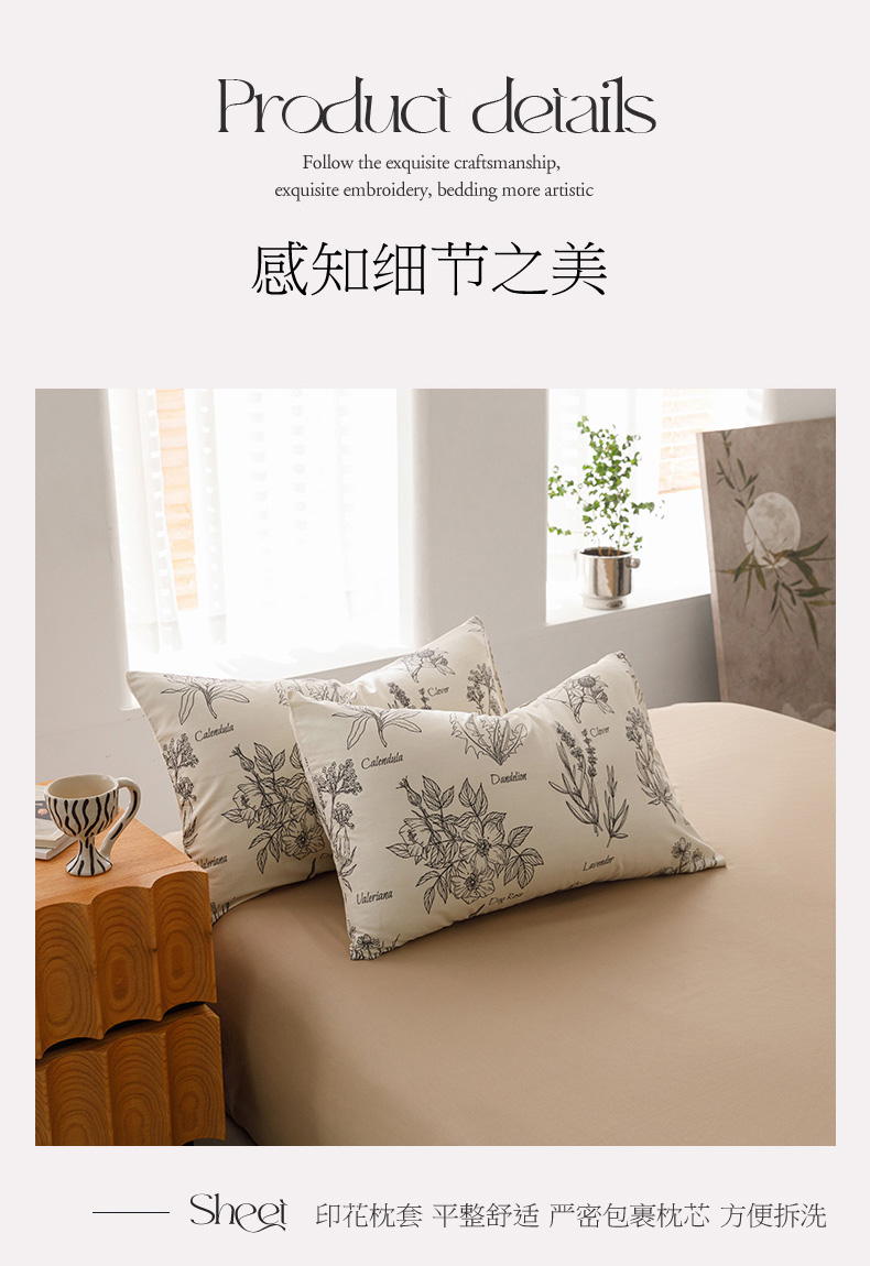 商品名称:倾慕家纺 2024新款典雅风全棉13370简约印花系列四件套 暮秋
