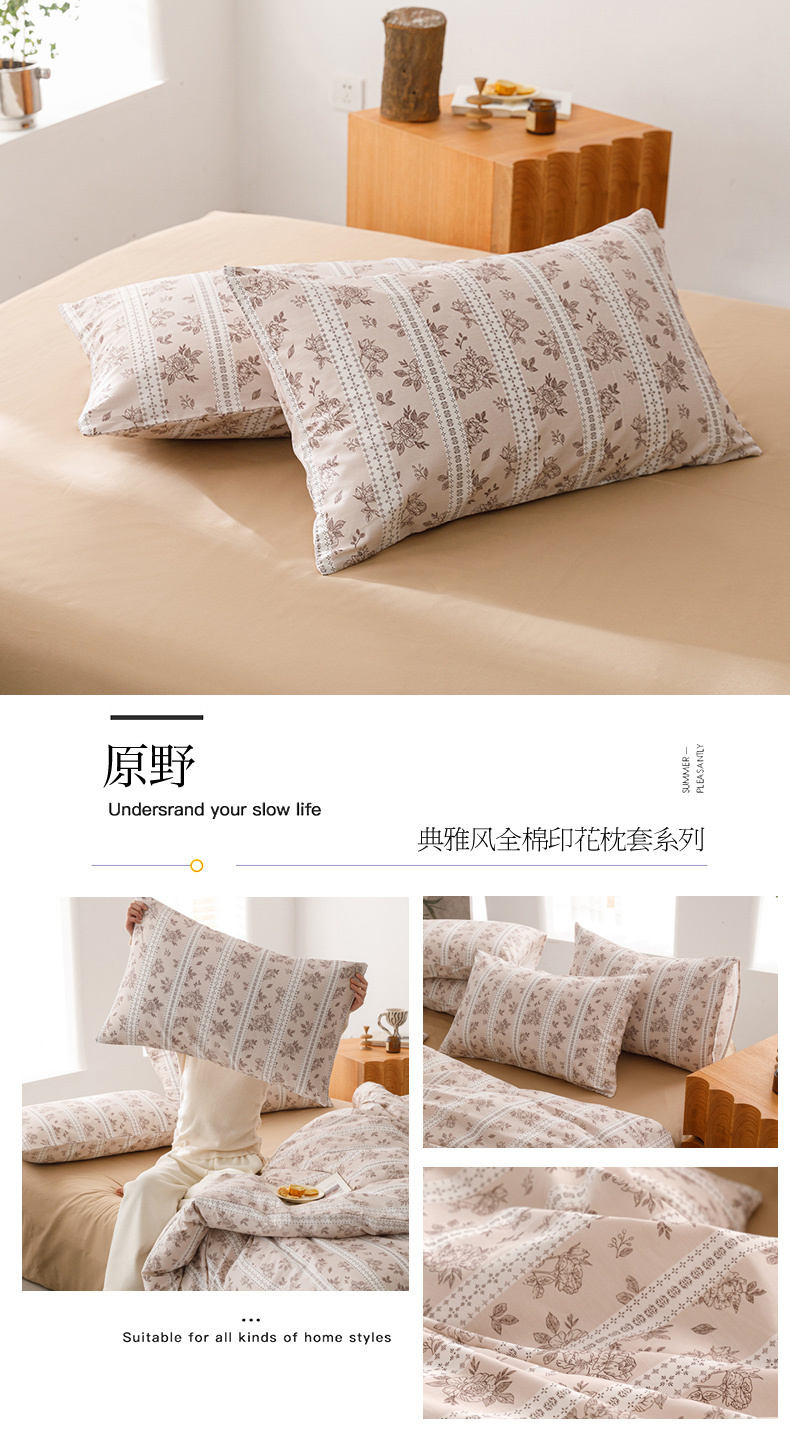 倾慕家纺 2024新款典雅风全棉13370简约印花系列单枕套 原野