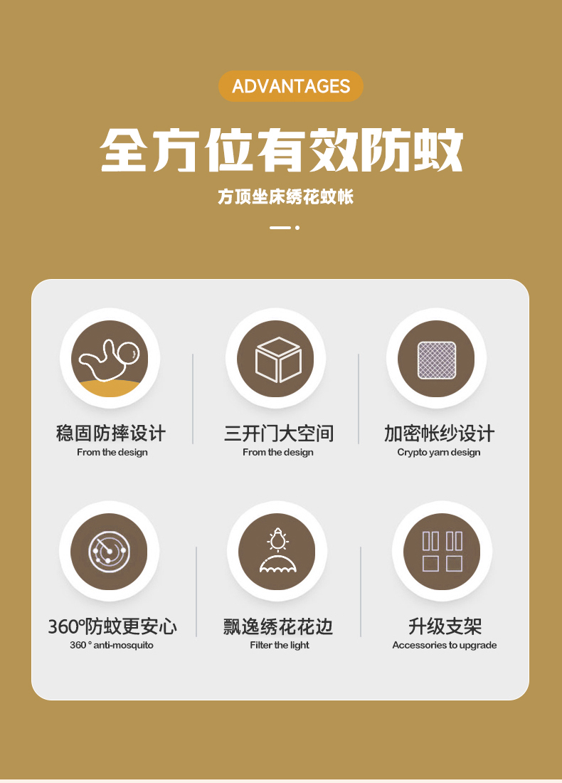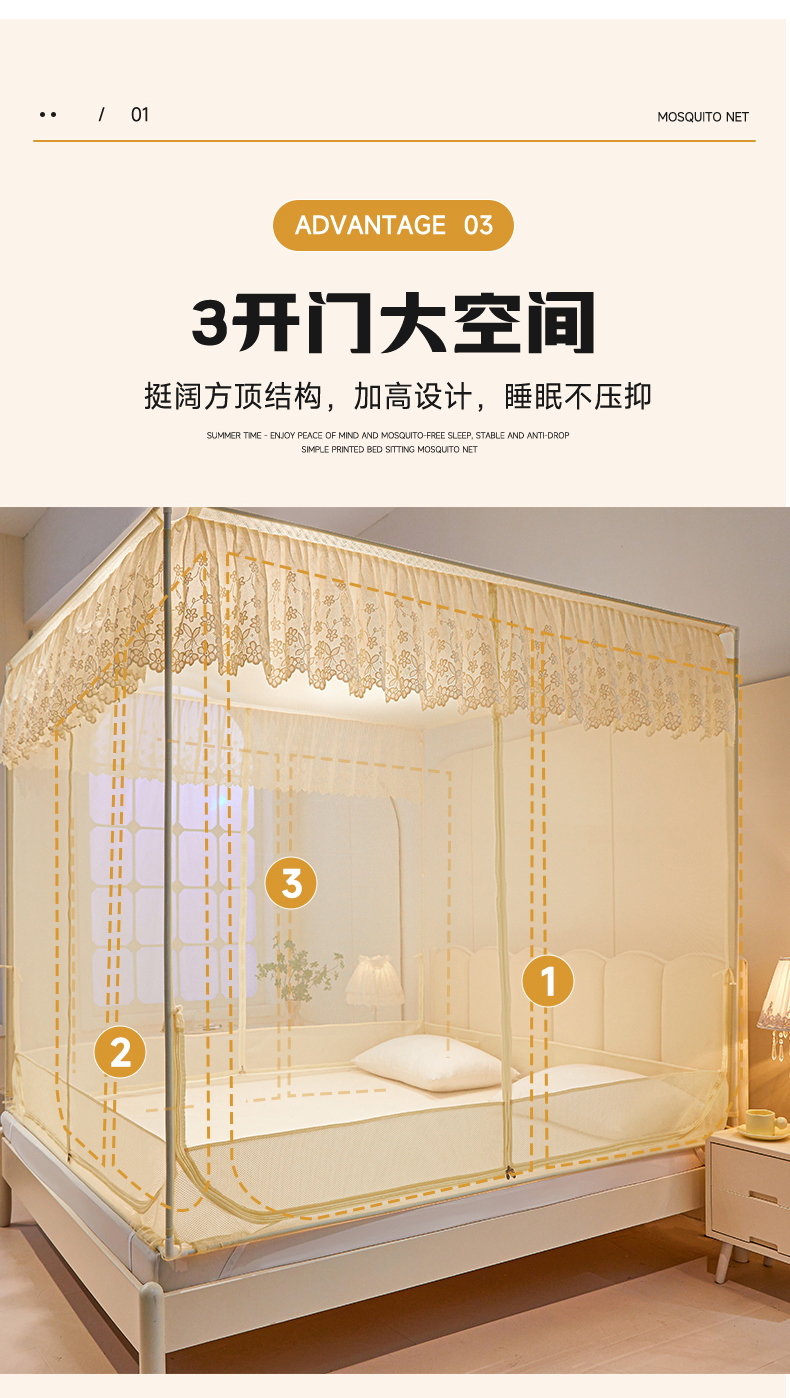当前位置: 91家纺网 > 商品网购 > 床上用品 > 蚊帐 > 坐床式蚊帐 > 2024新款方顶坐床绣花蚊帐-郁金香(型号853) 优雅黄