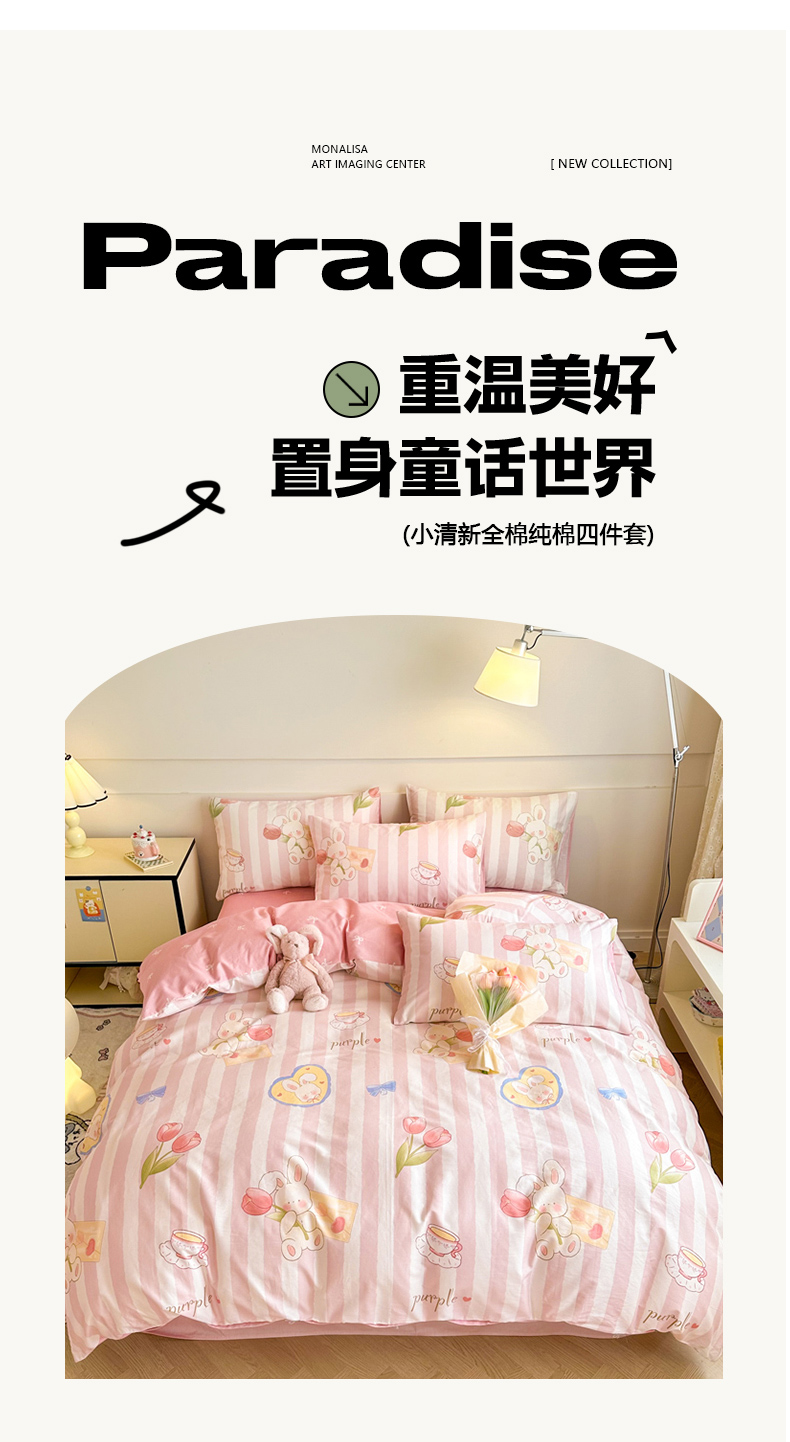呗旺鹿 2024新款小清新全棉纯棉四件套瑞贝卡