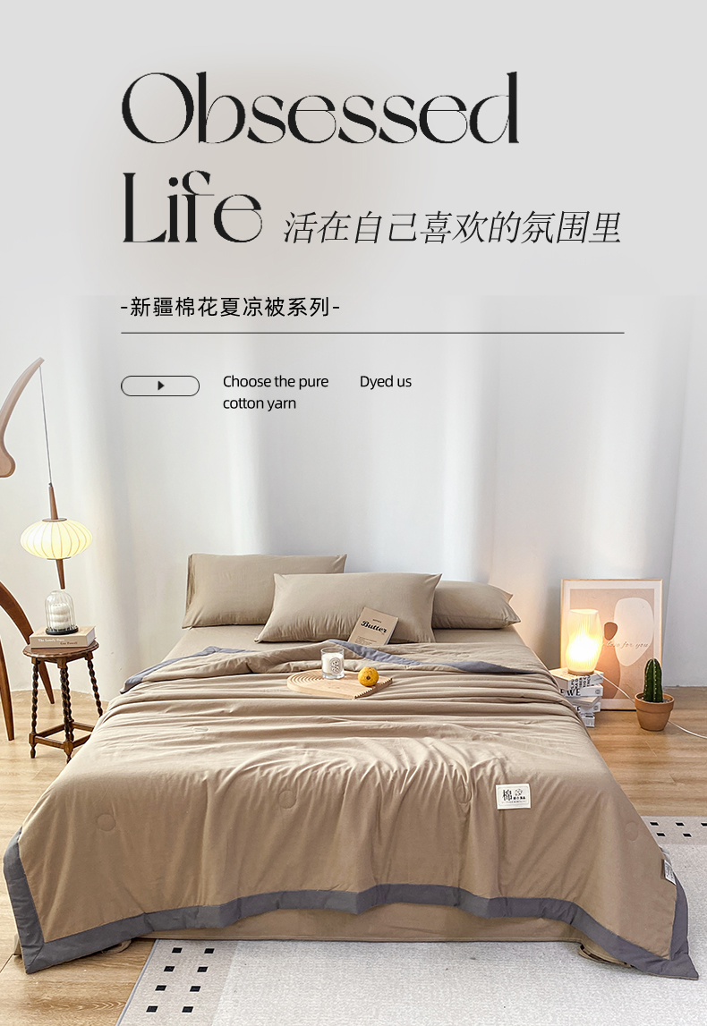 (总)鸣升家纺 新款里外全棉100%新疆棉花被夏被四件套,暗灰,本白,黄色,绿色,浅粉,浅蓝,浅驼,深蓝