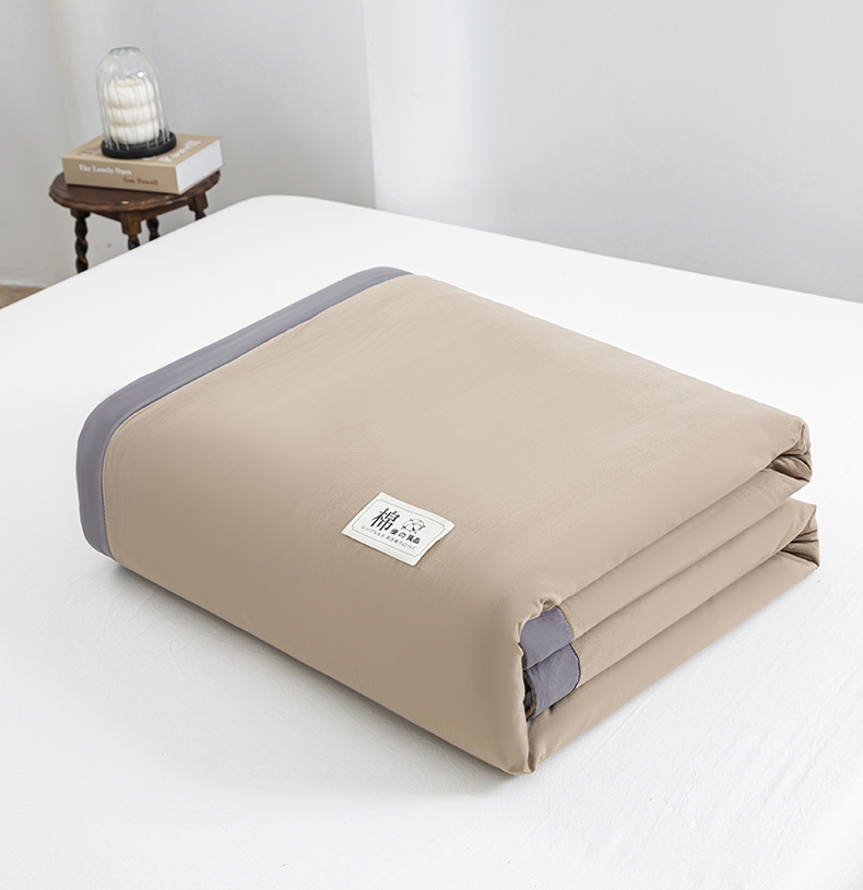 鸣升家纺 新款里外全棉100%新疆棉花被夏被四件套 浅驼