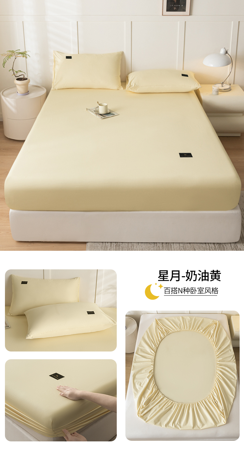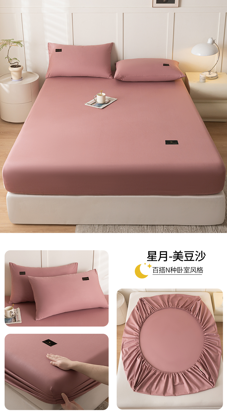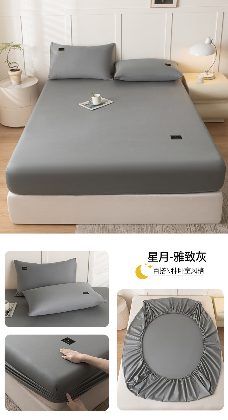 商品名称:(总)鑫钰 2024新款A类全棉抗菌纯色素色无印风新疆长绒棉床笠-星月