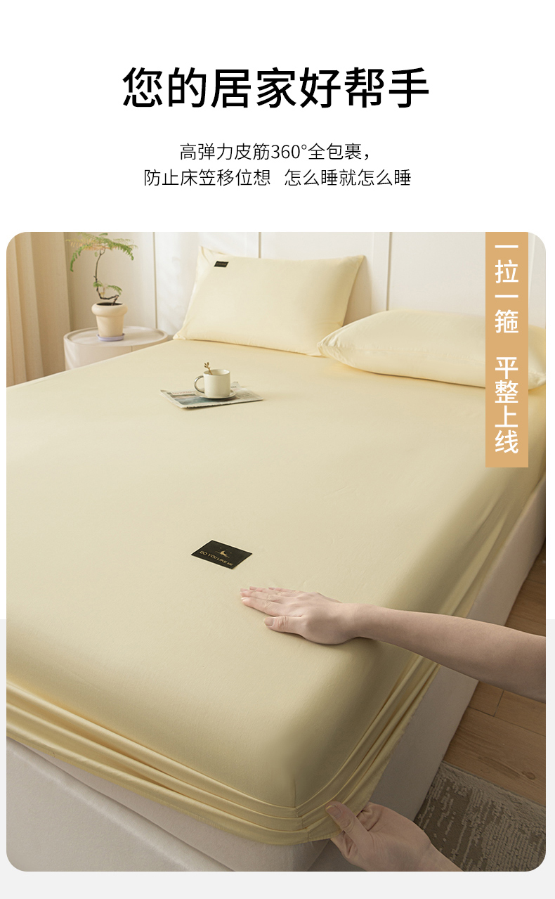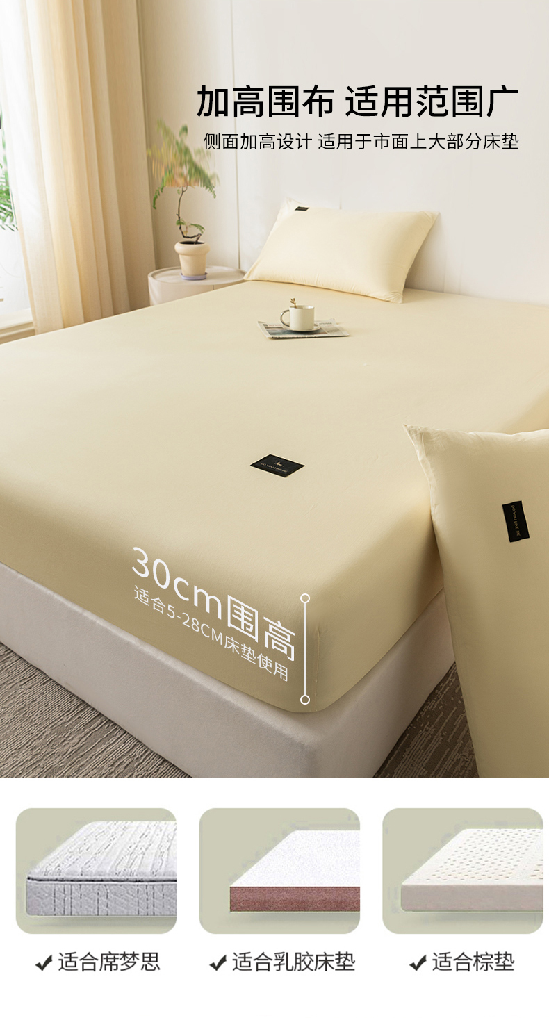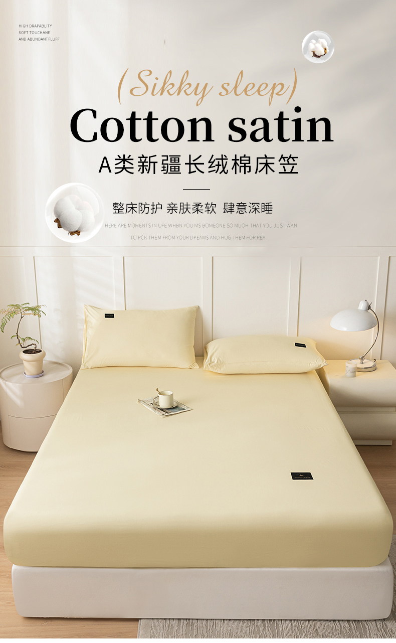 商品名称:(总)鑫钰 2024新款A类全棉抗菌纯色素色无印风新疆长绒棉床笠-星月