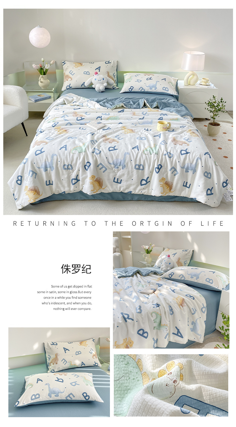 憨豆 2025直播代发泡泡云朵棉印花夏被四件套系列 侏罗纪