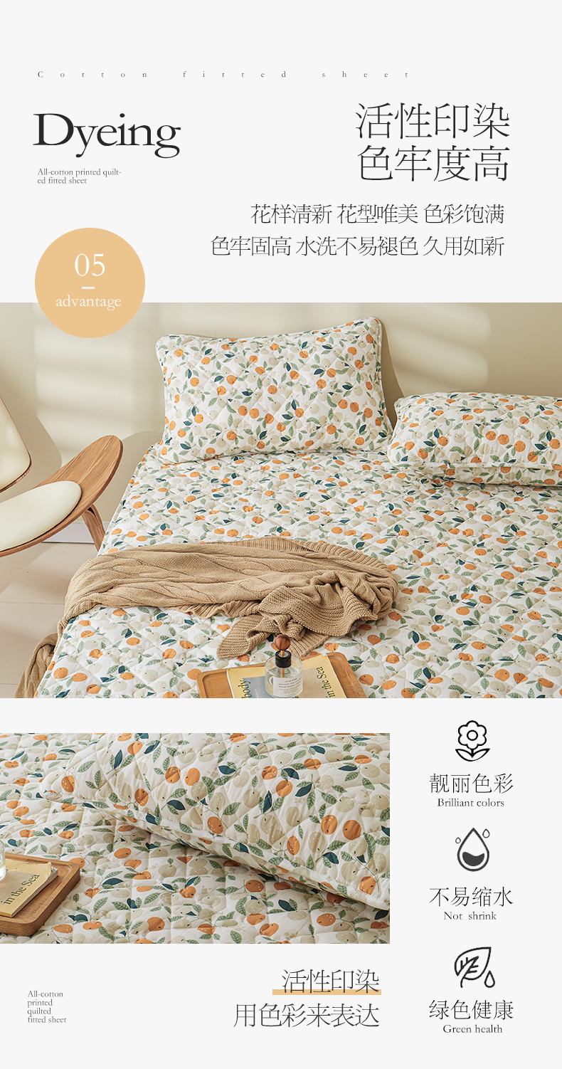 3C 2024新款全棉水洗棉印花大豆床笠 小橙子