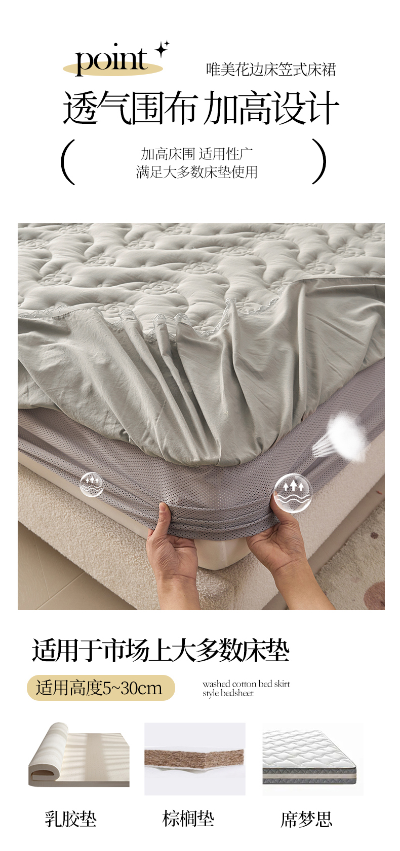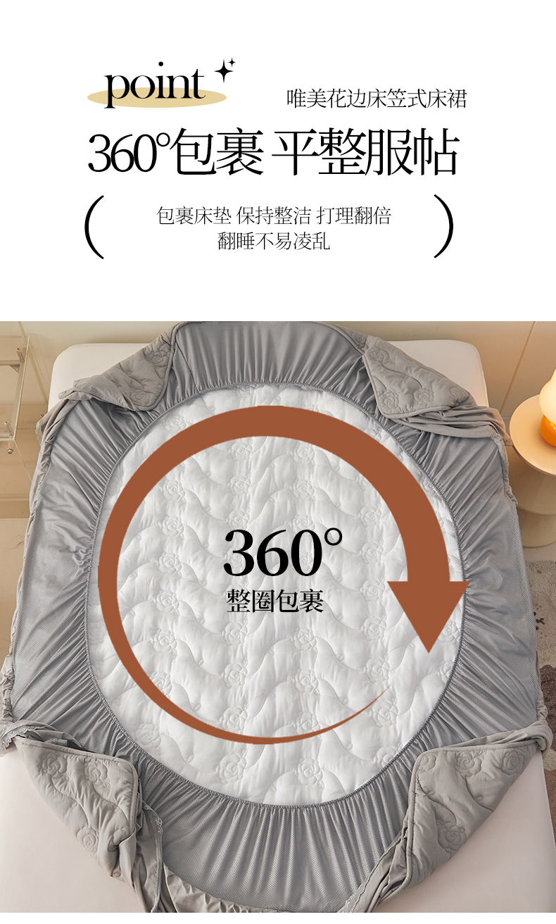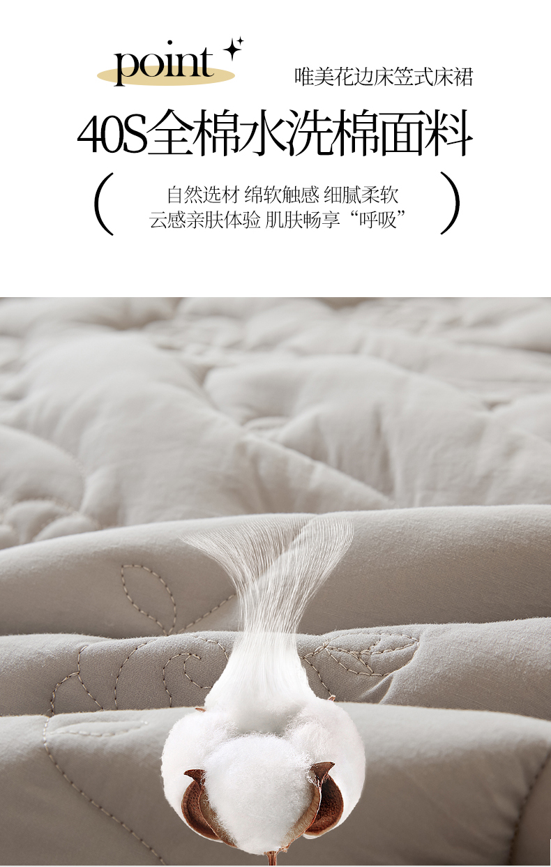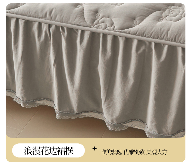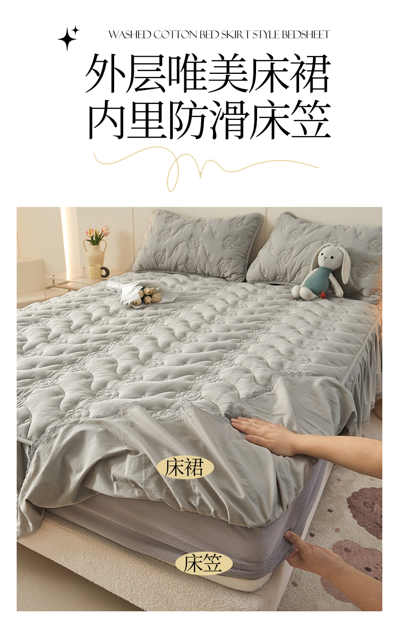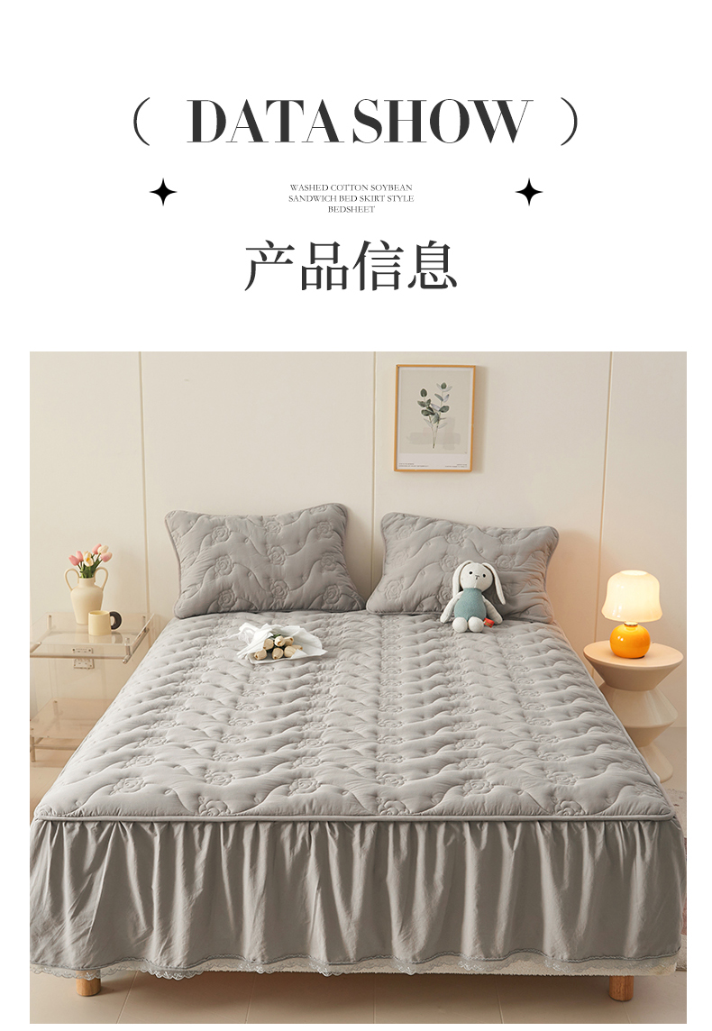 商品名称:3C 2024新款玫瑰水洗棉床裙式床笠 夜光灰