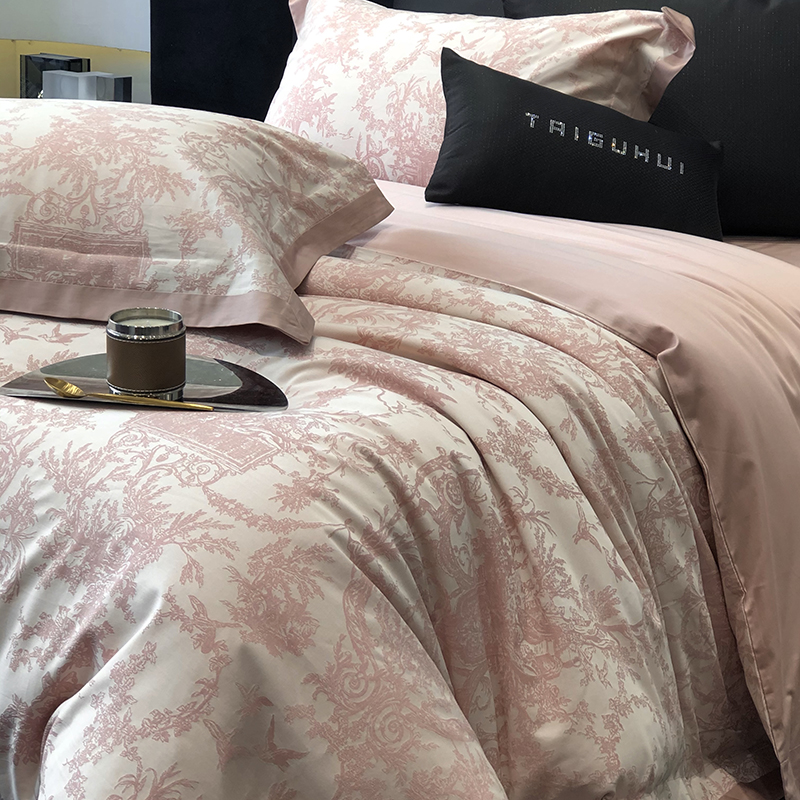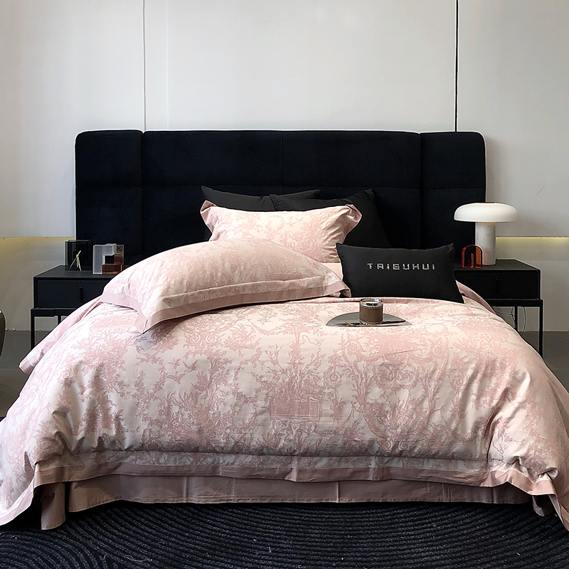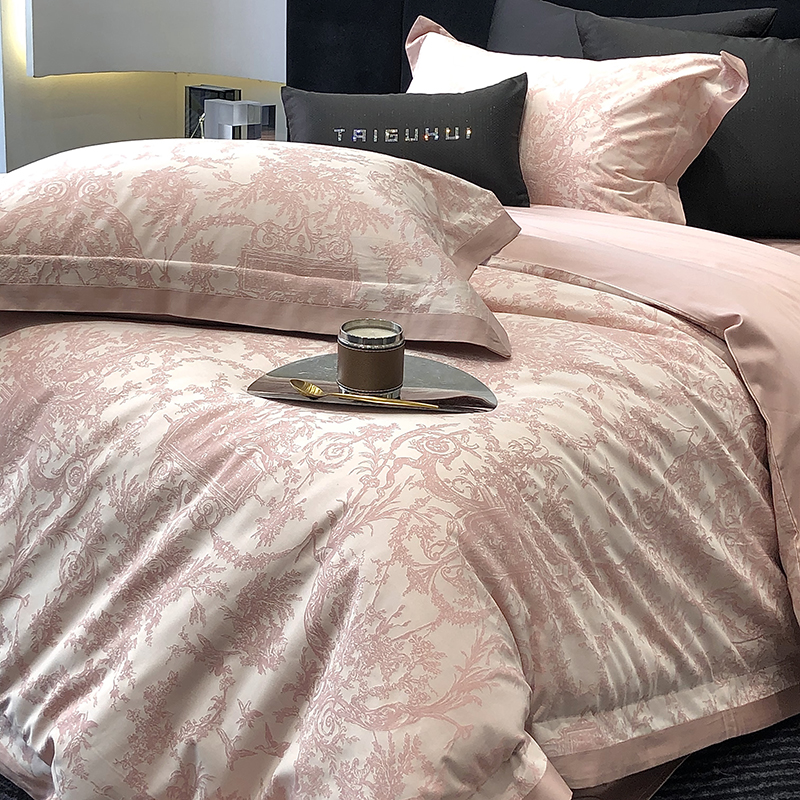 商品名称:太古汇 2024新款全棉色织大提花双拼四件套--墨尔本 墨尔本-粉