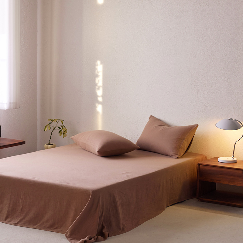 简纯主义 2025新款全棉有机雾感纱双层皱皱纱系列单床单 乌山可可