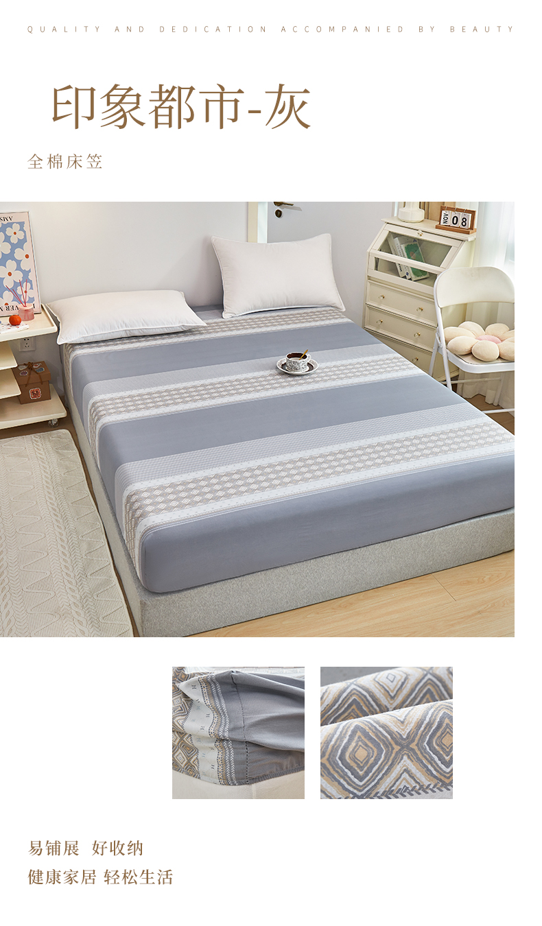 • 91家纺网 家纺一手货源 找家纺 元元被芯 2024新款小清新全棉套件单品-单床笠 印象都市-灰