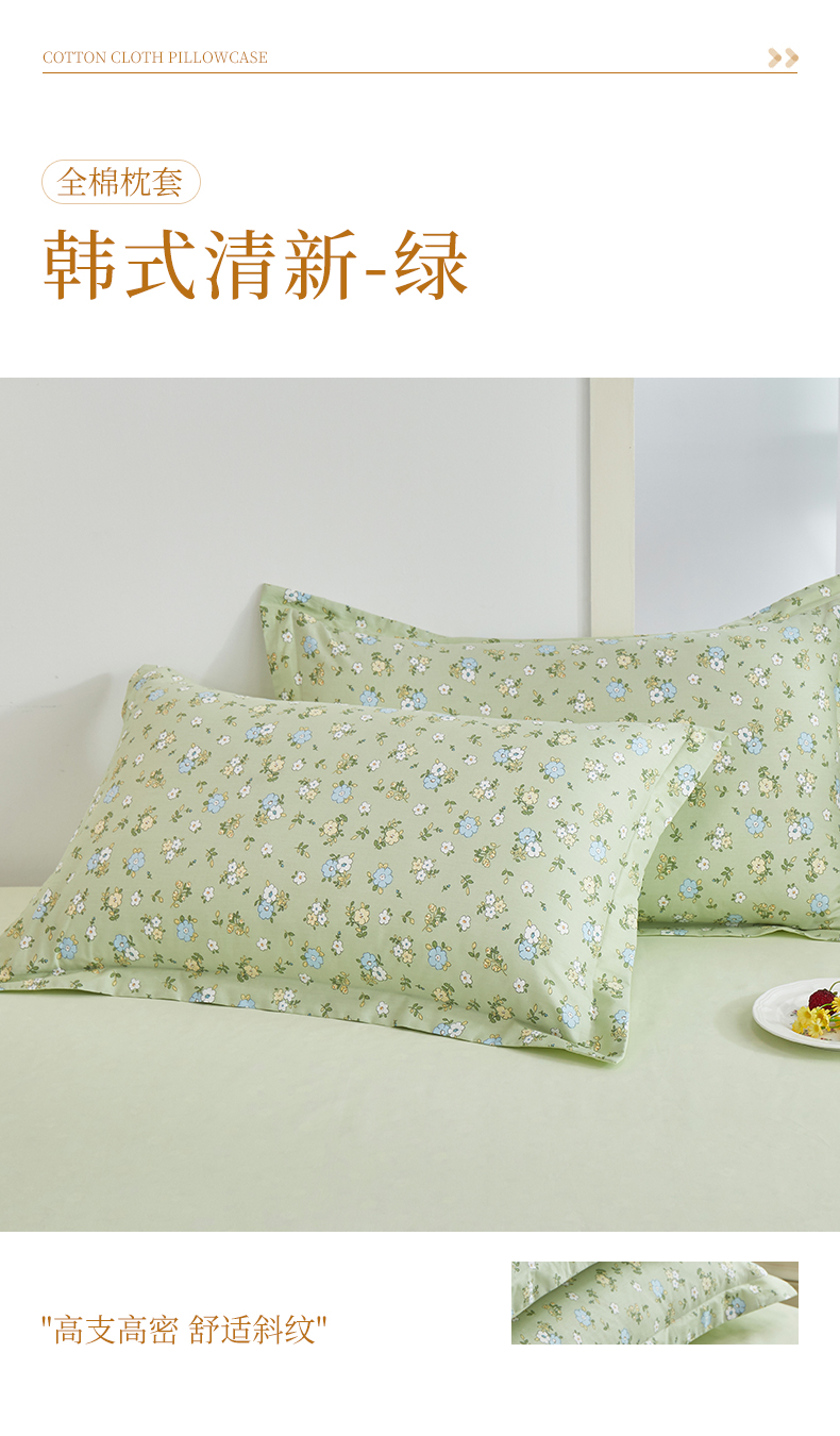 商品名称:元元被芯 2024新款小清新全棉套件单品-单枕套 韩式清新-绿
