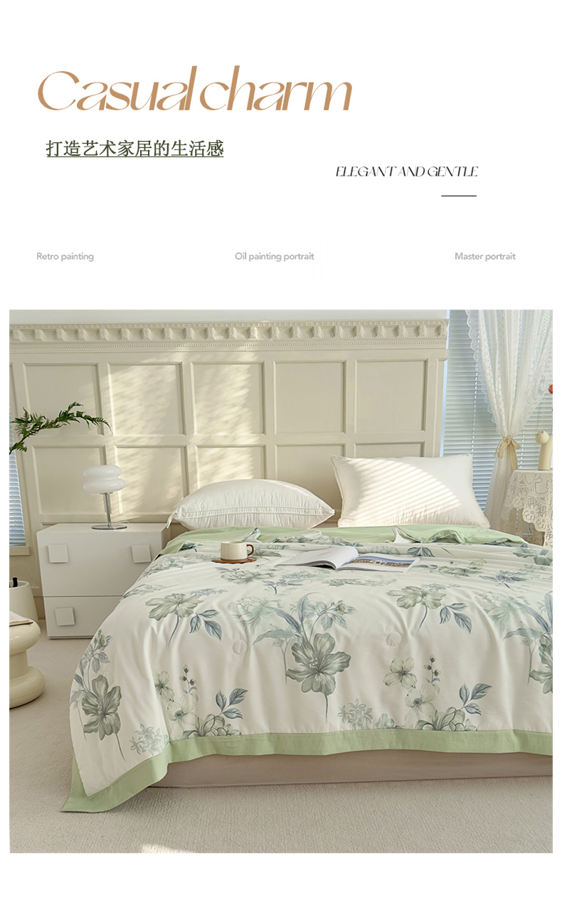 商品名称:青螺家纺2024新款50S天丝夏凉被 半夏花语-绿