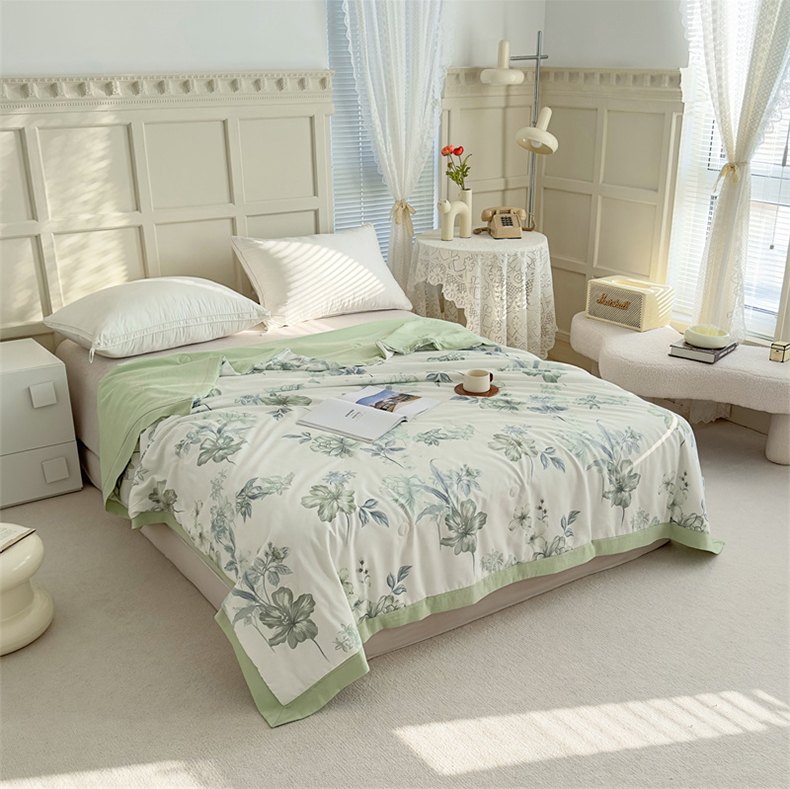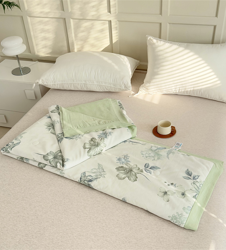 青螺家纺2024新款50S天丝夏凉被 半夏花语-绿