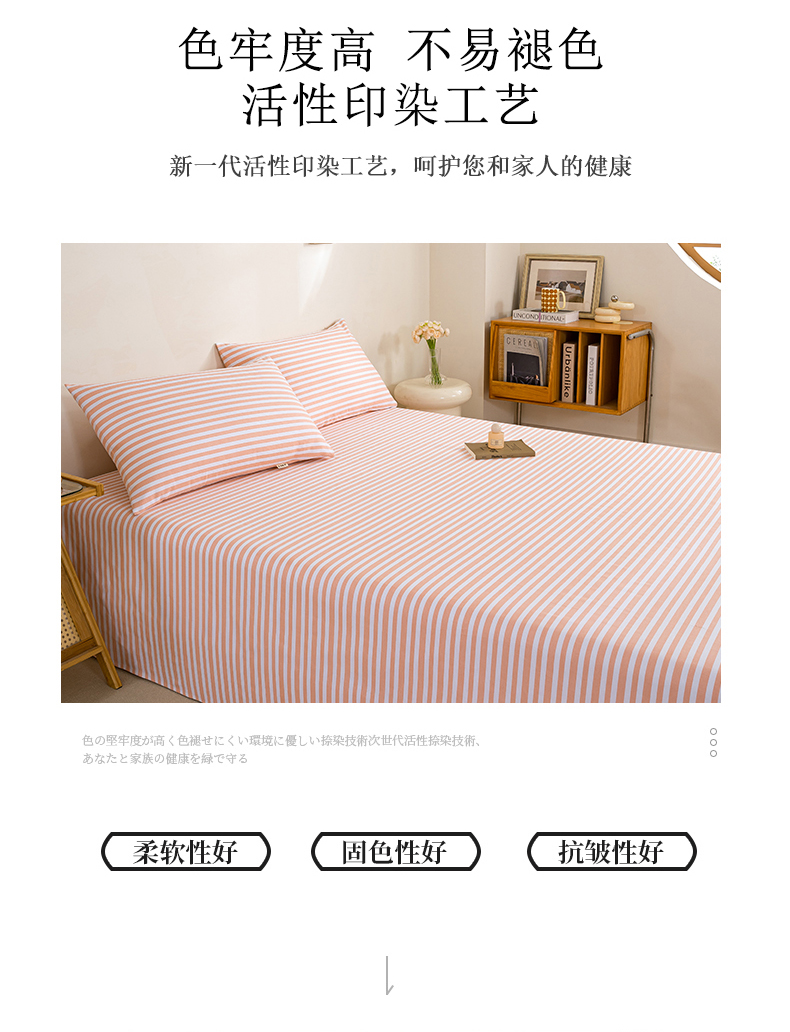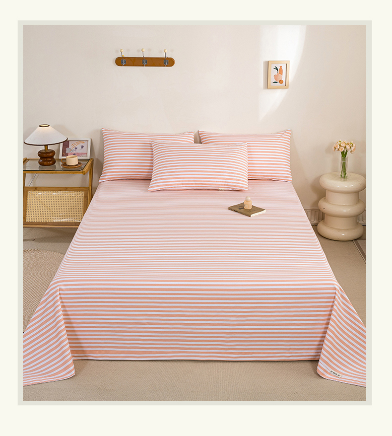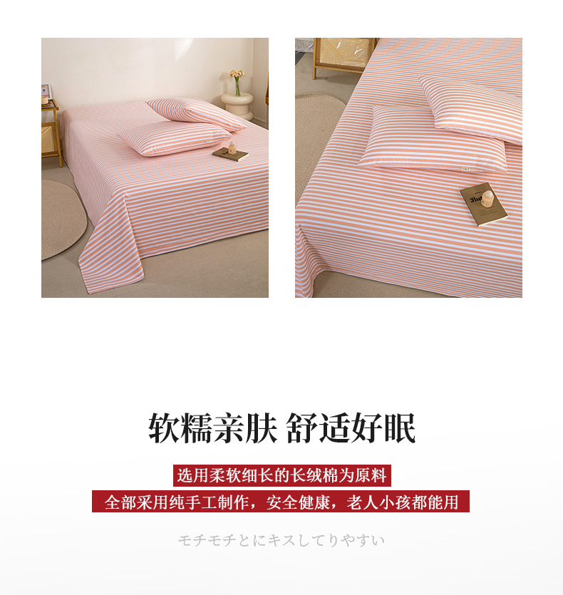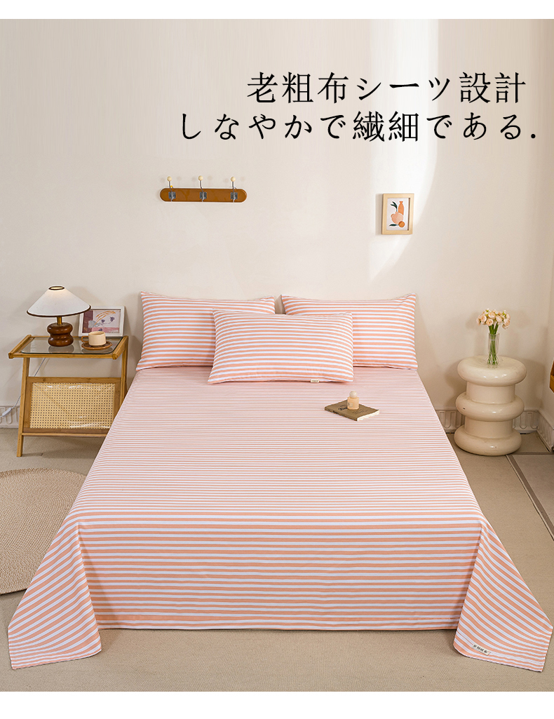 九沐良品 新款全棉无印老粗布单品床单+三件套 细川(粉