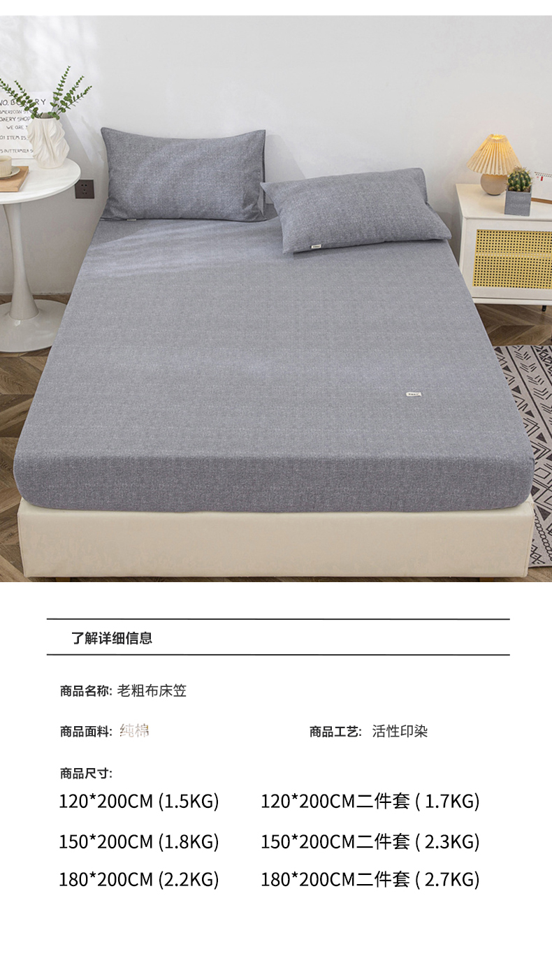 • 91家纺网 家纺一手货源 找家纺 金泰莱 2025新款老粗布床笠三件套全棉床笠纯棉床笠单床笠 浅灰