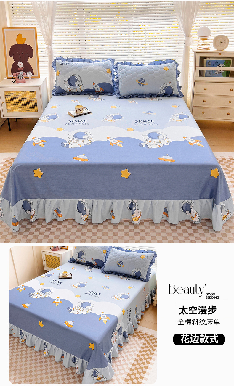 情煊家纺 2024新款全棉斜纹花边床单系列-印花款 太空漫步