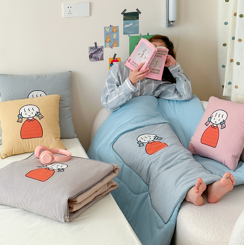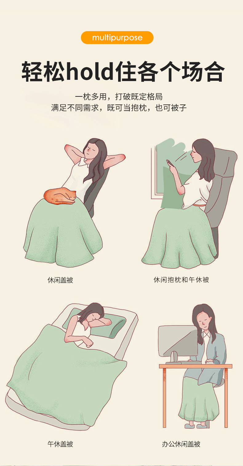 (总)多米家居 2025新款多功能印花嗖系抱枕被,暗苔绿,丹宁蓝,矿石黑,小鸡黄,杏仁咖,云水灰