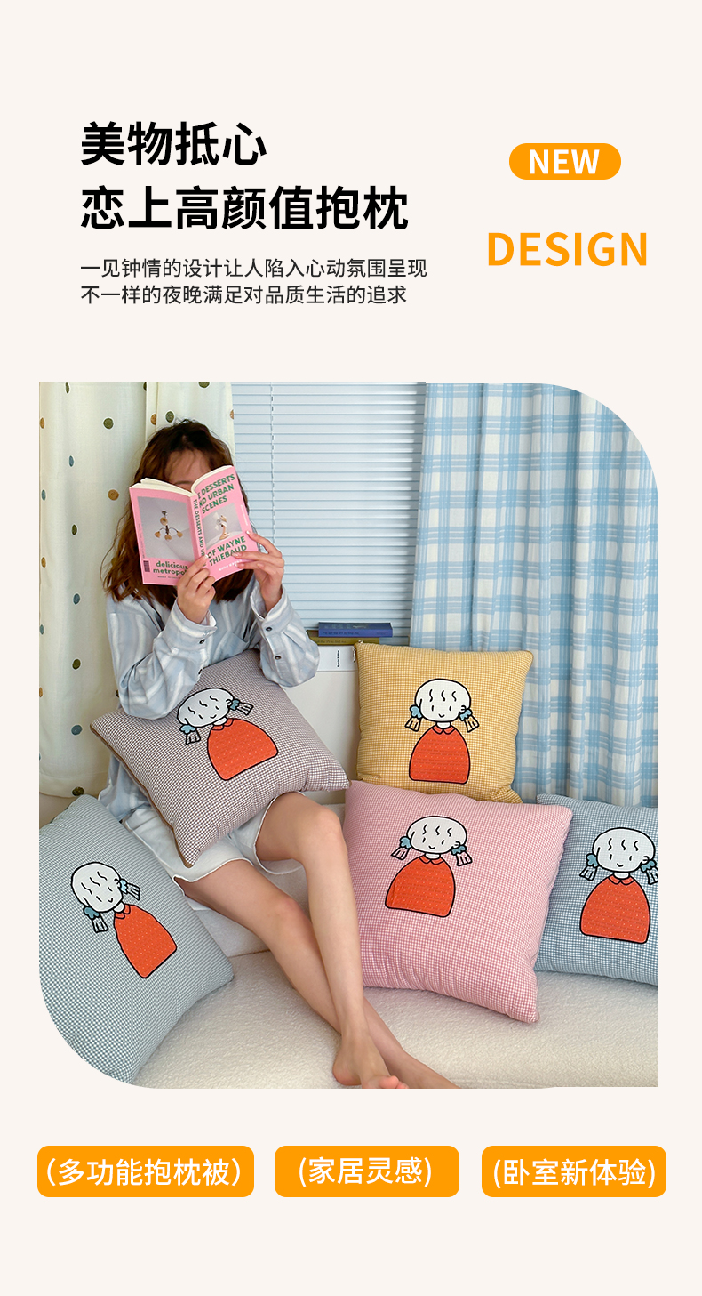 (总)多米家居 2025新款全棉口袋印花抱枕被,菠萝格-粉,菠萝格-蓝,一口平安果,蝶恋花-紫,繁花-咖,繁花-绿,莫奈-橙,动物世界,朗棕熊,贴贴喵,茶花物语,棋盘灰格,格调-蓝