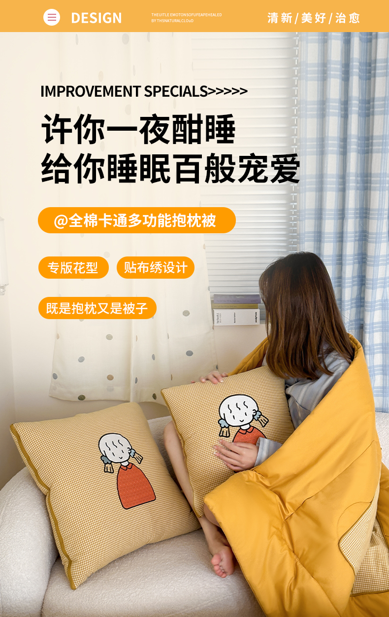 商品名称:多米家居 2024新款卡通多功能抱枕被Amy小窝抱枕被 糖果-黄