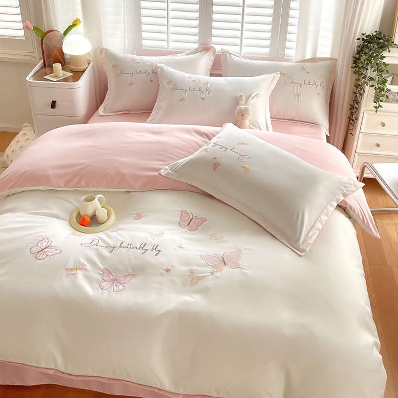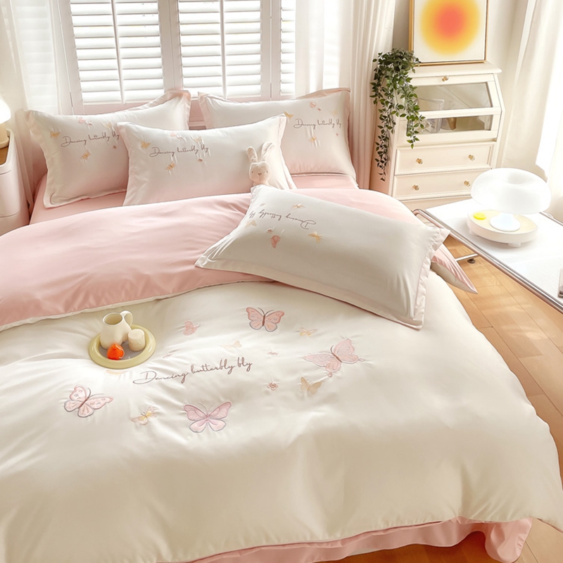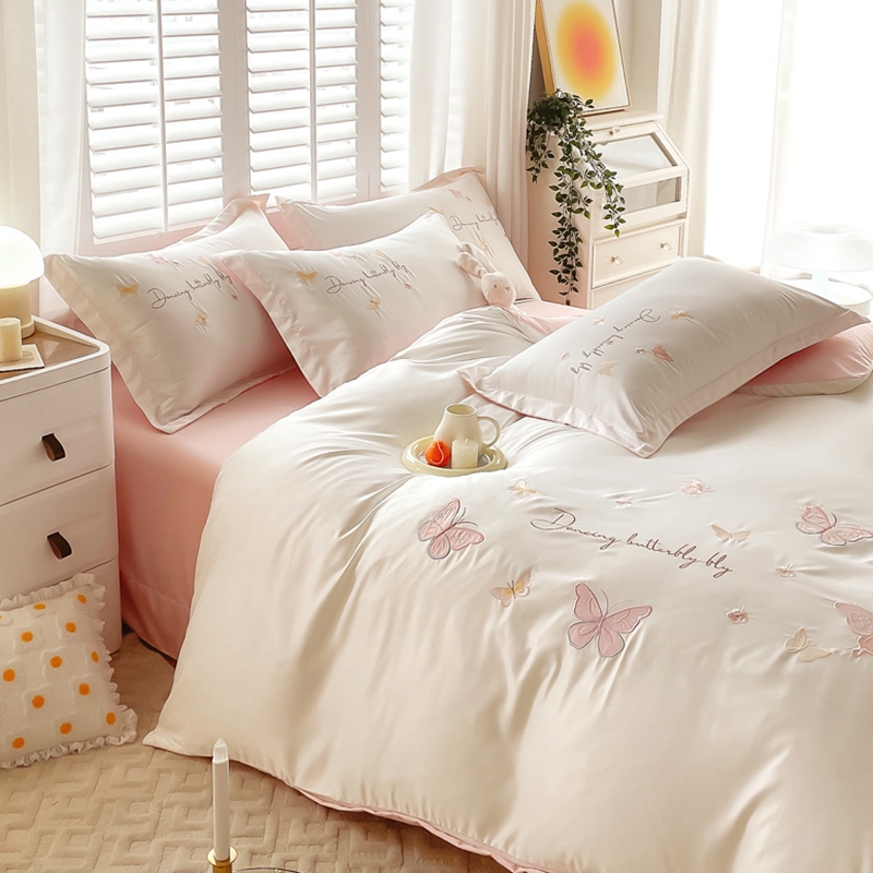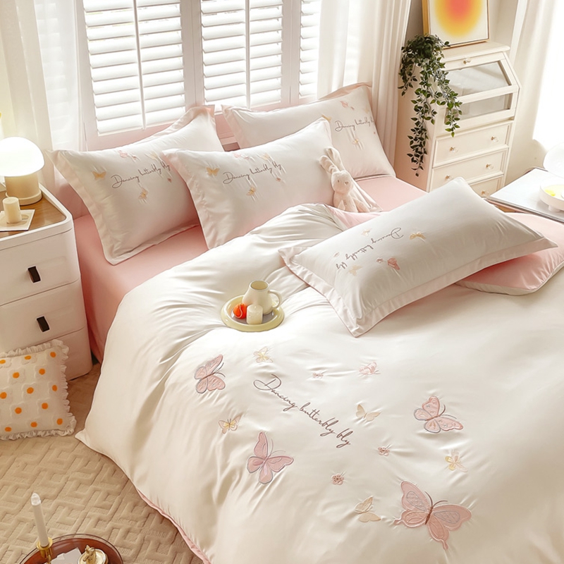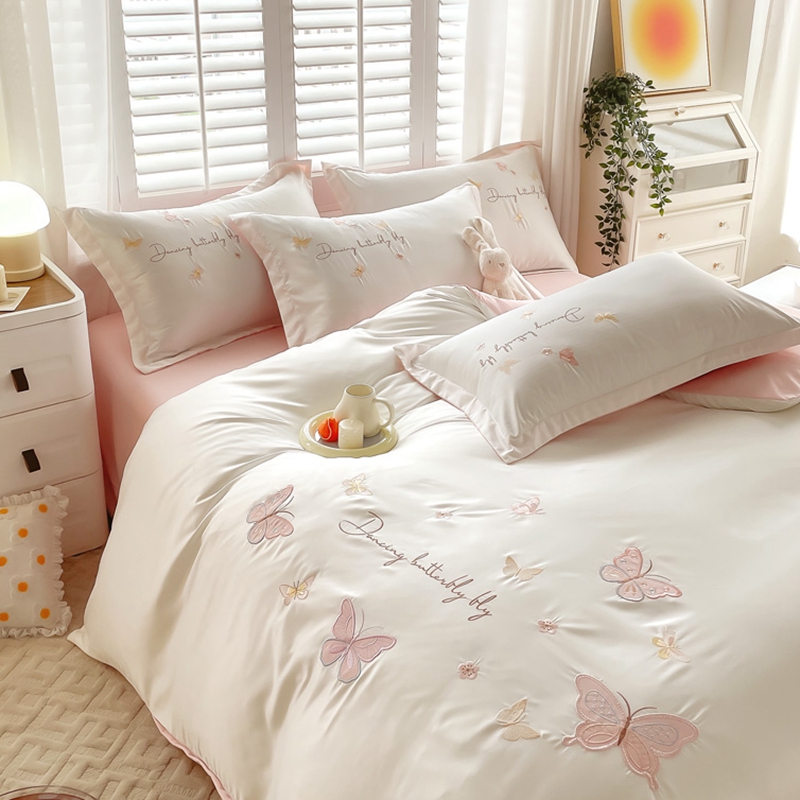 凡客家居 2024新款水洗真丝绣花四件套 蝴蝶恋