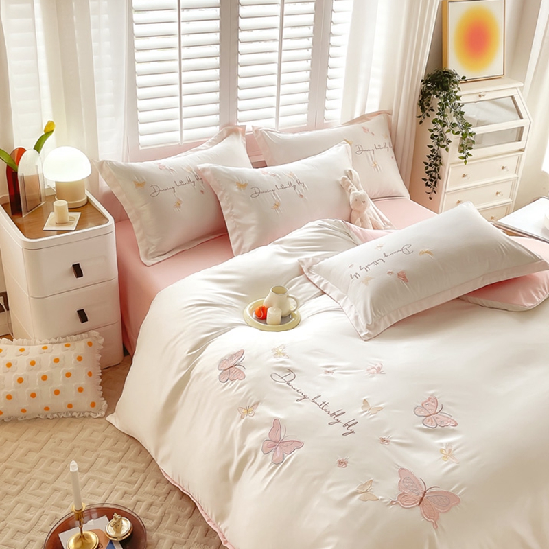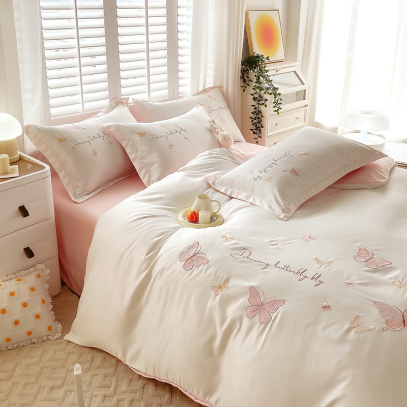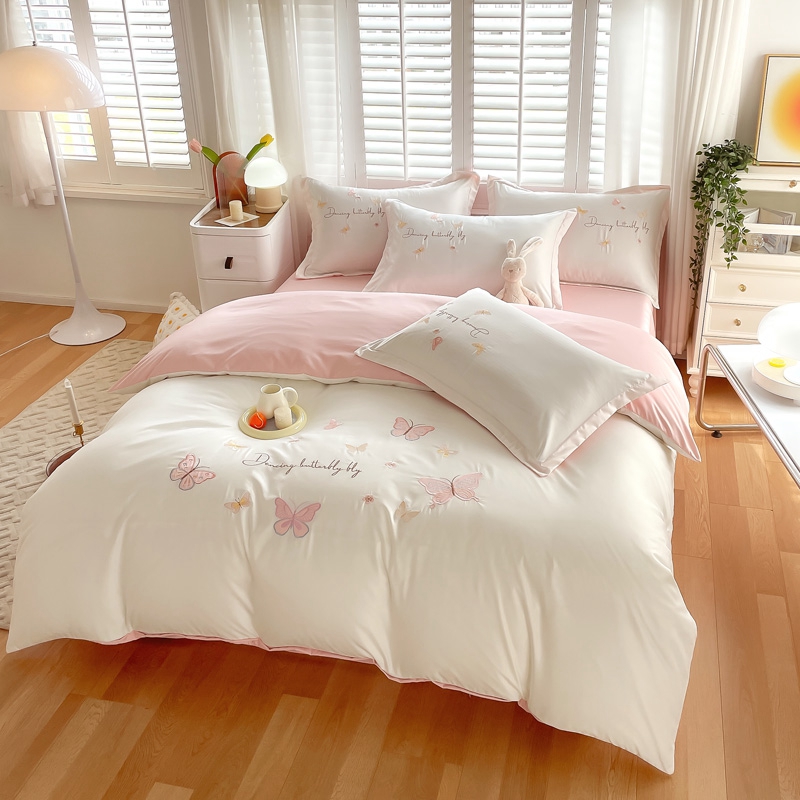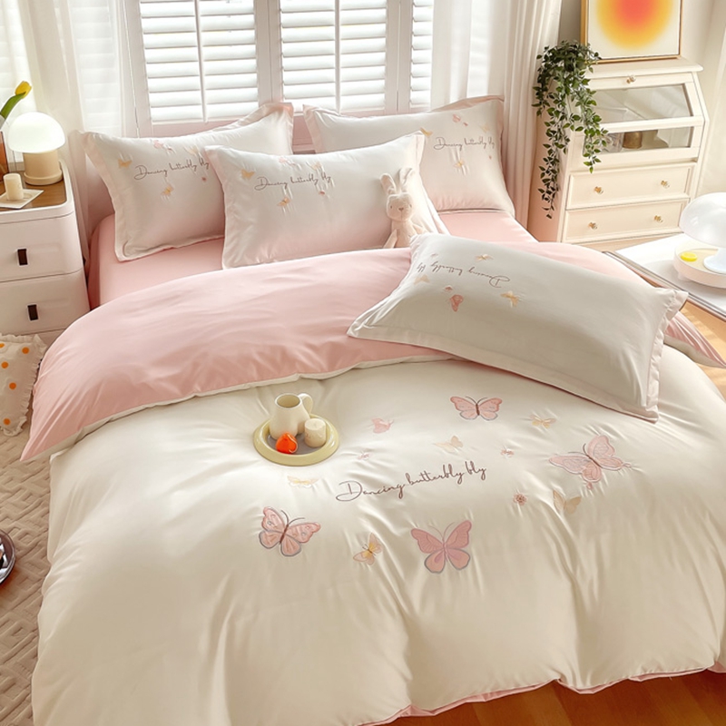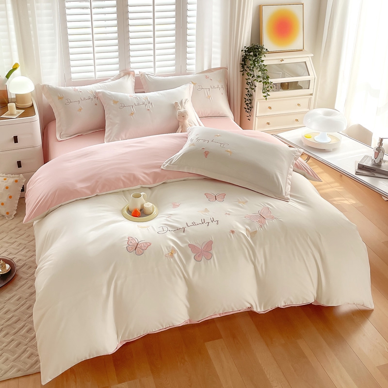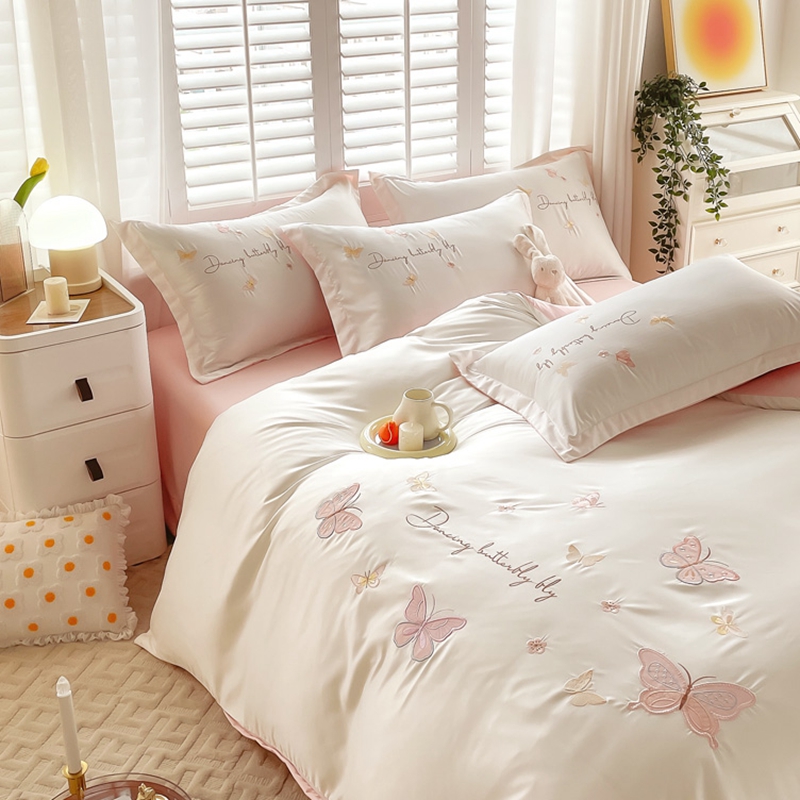 凡客家居 2024新款水洗真丝绣花四件套 蝴蝶恋