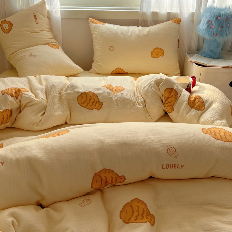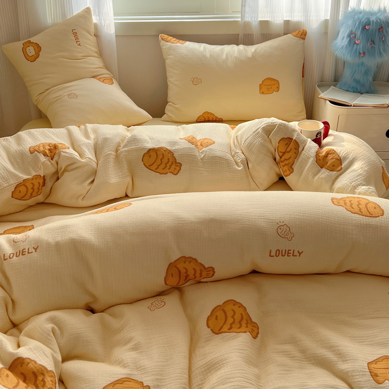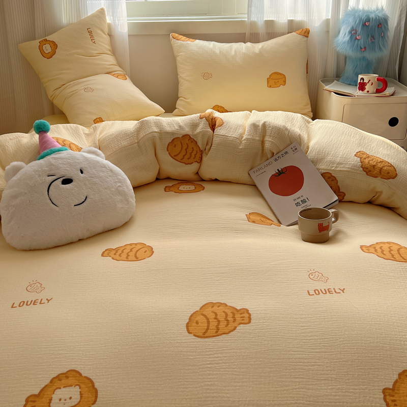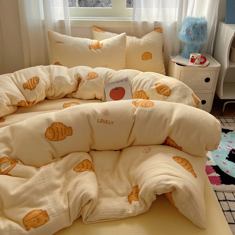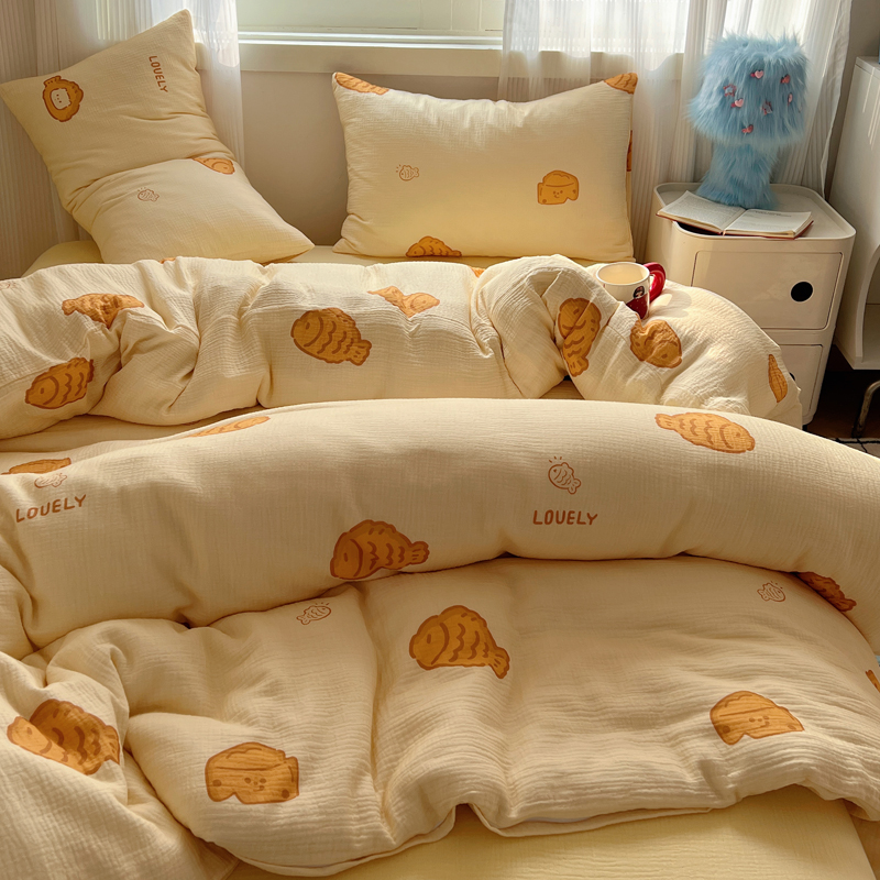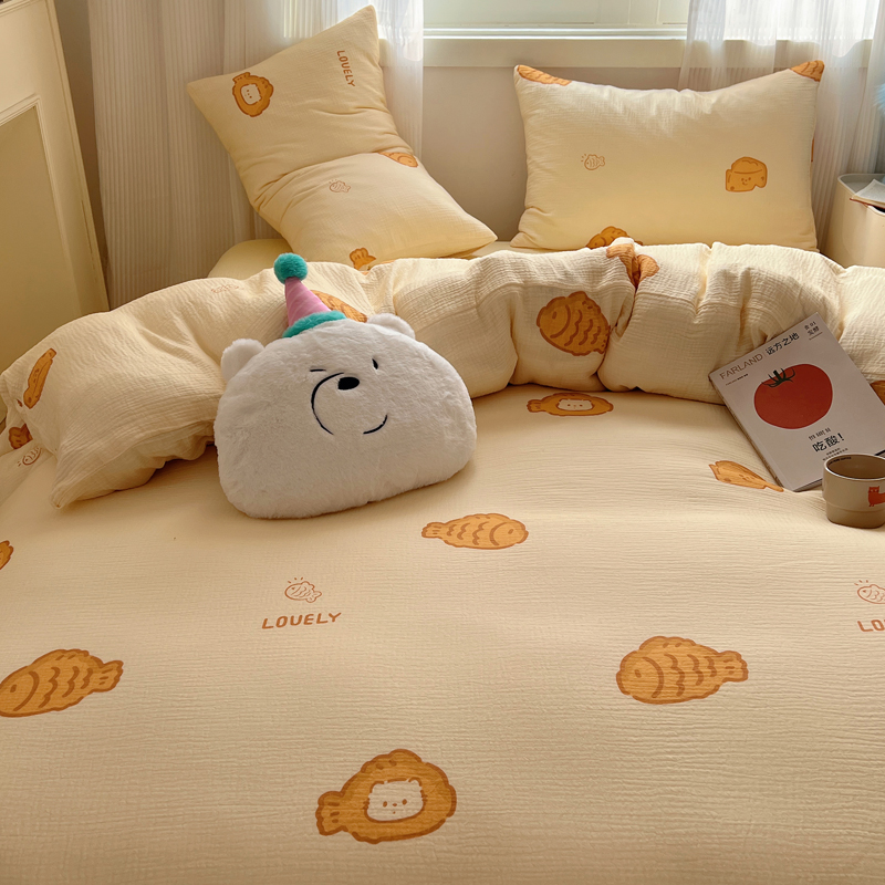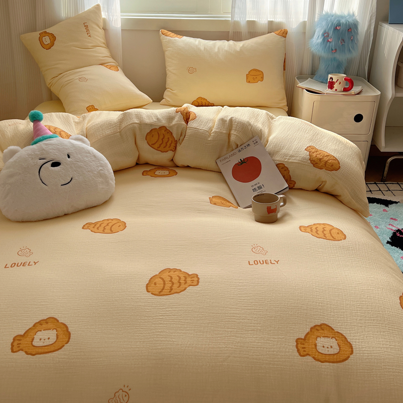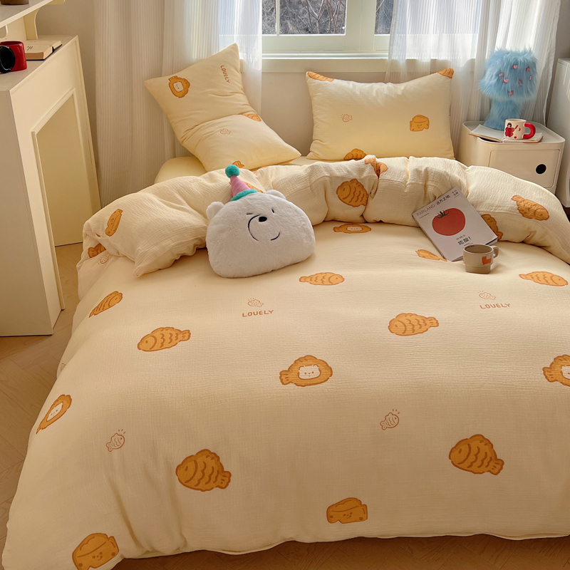 当前位置: 91家纺网 > 商品网购 > 床品套件 > 四件套 > 水洗棉四件套 > 盼季 2024新款A类母婴级水洗棉床上用品四件套卡通儿童床单被套宿舍三件套 小鱼多多