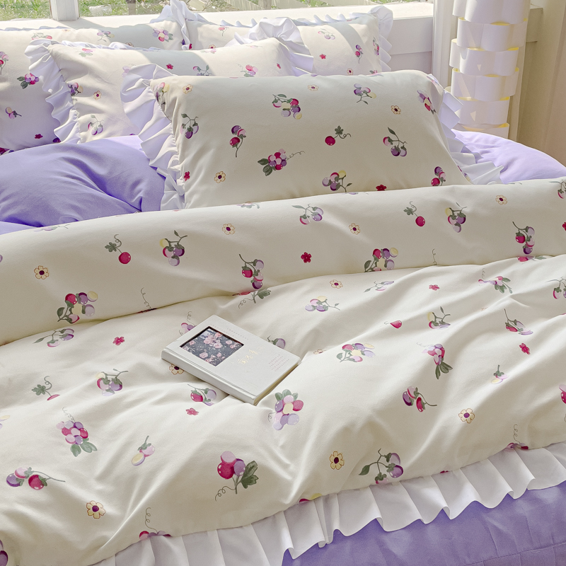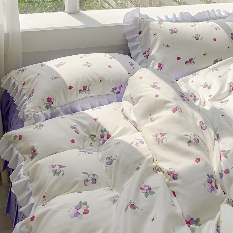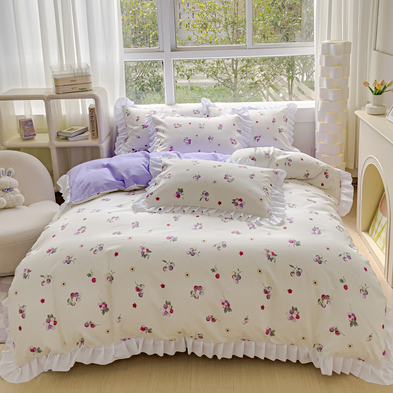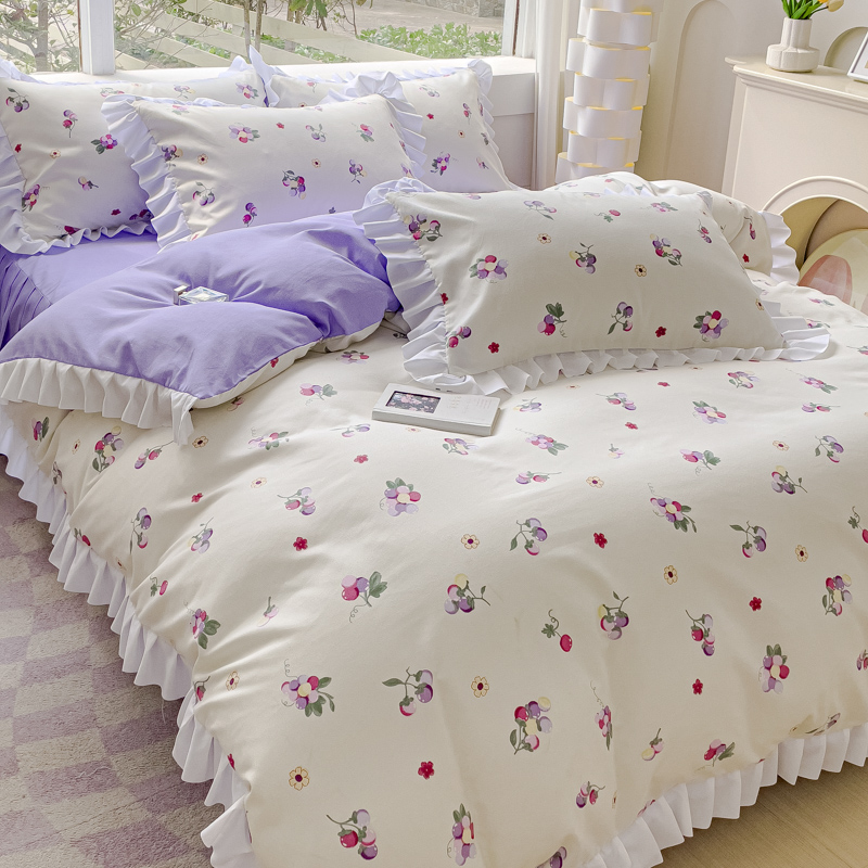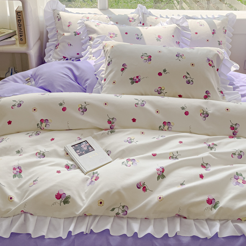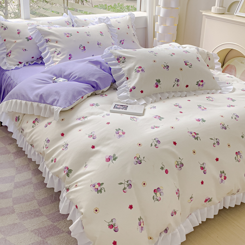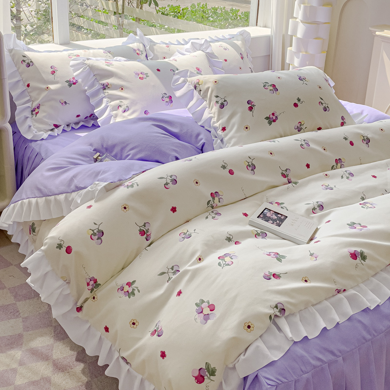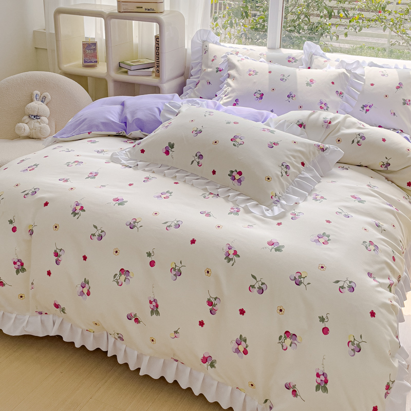 商品名称:麦瑞家纺 2024新款韩版公主风花边四件套 小葡萄