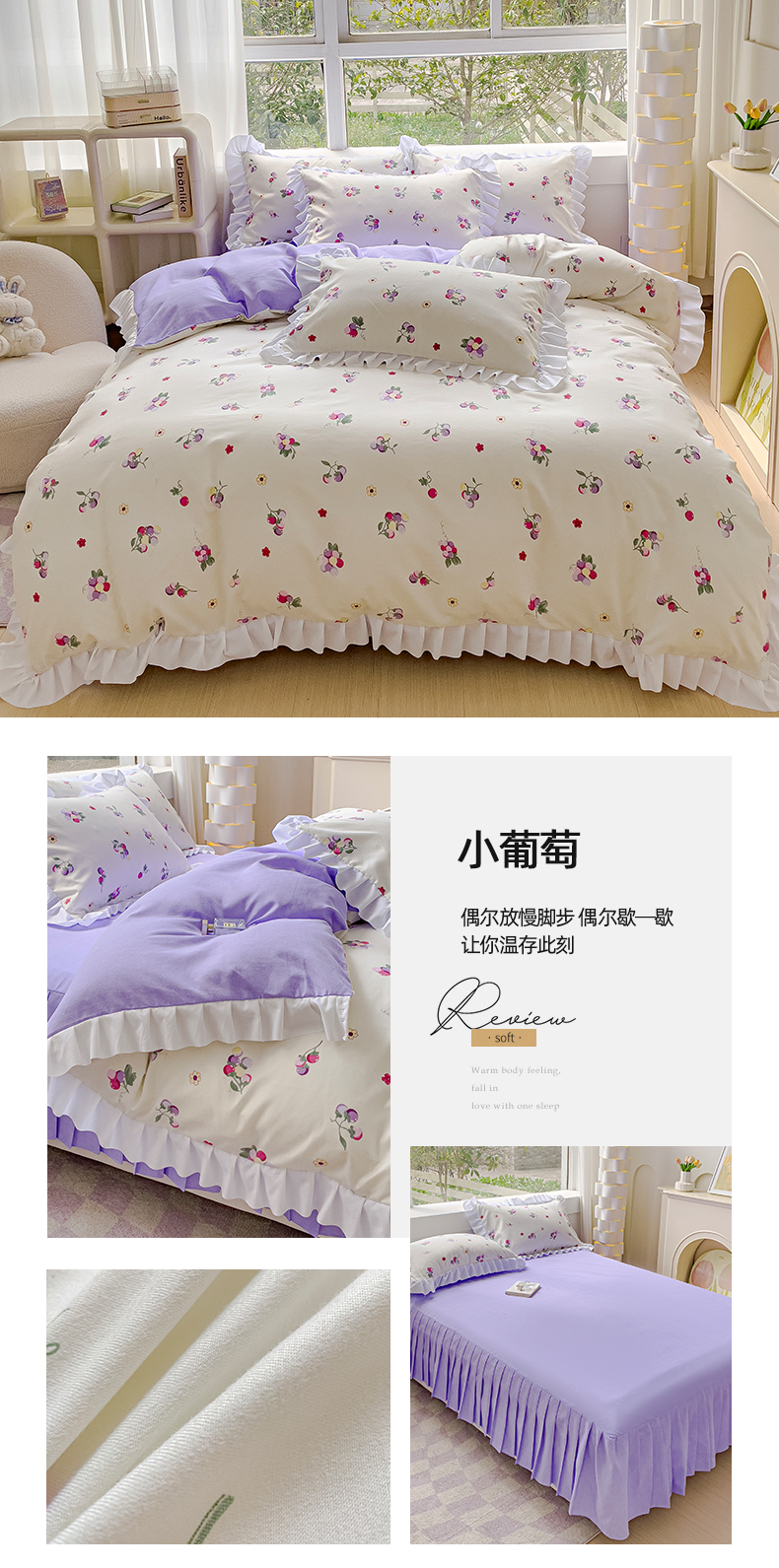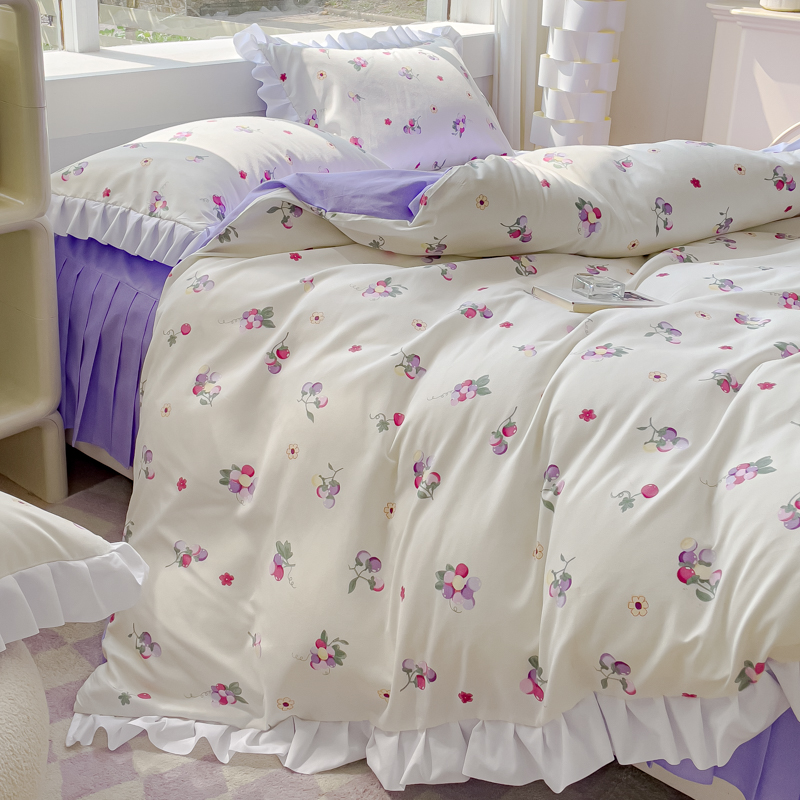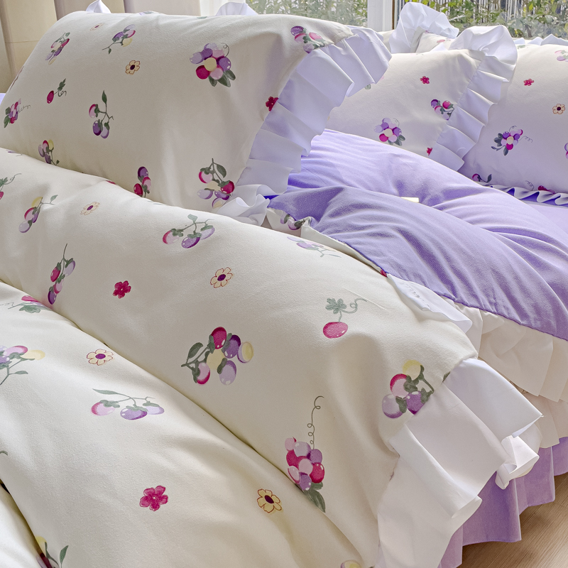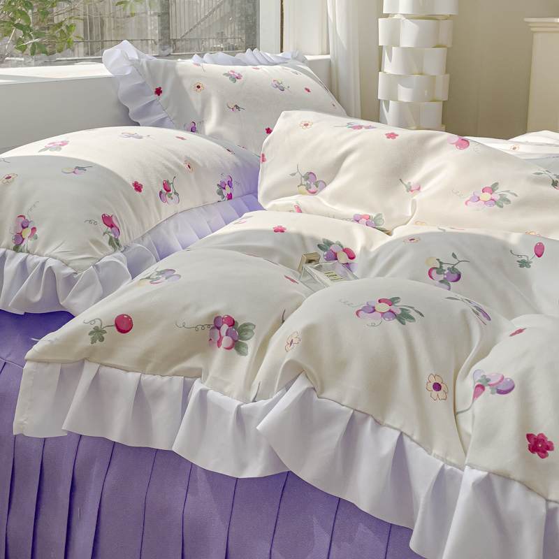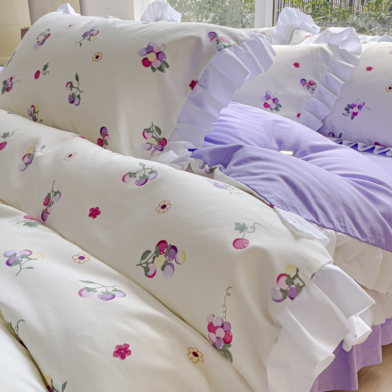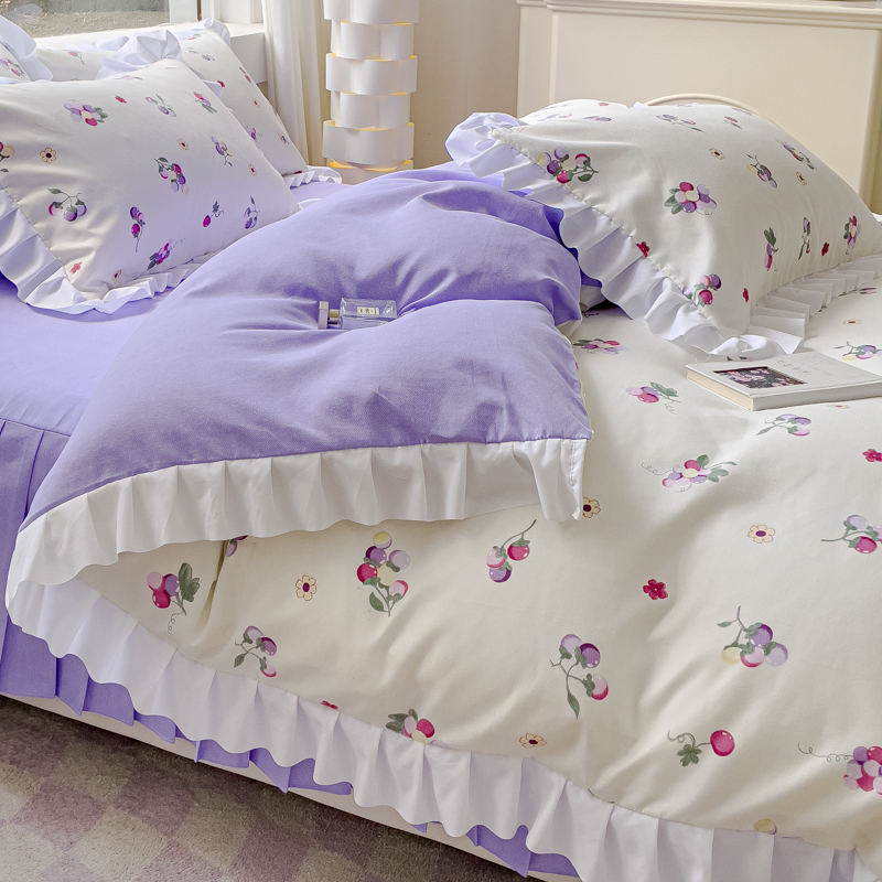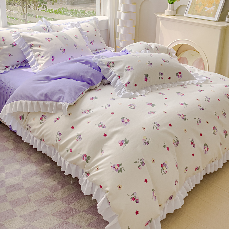 商品名称:麦瑞家纺 2024新款韩版公主风花边四件套 小葡萄