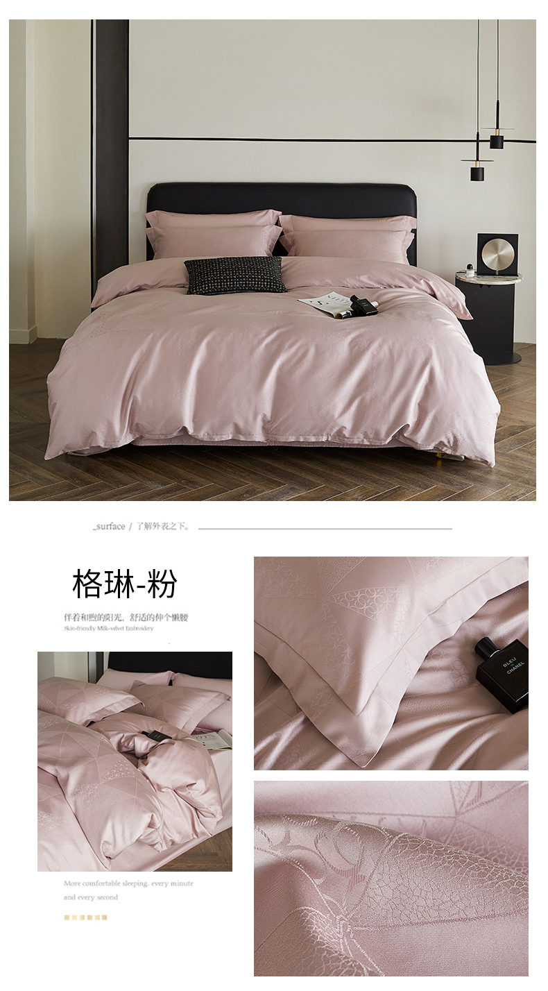 梦享生活家居 2024新款100支贡缎提花四件套 格琳-粉
