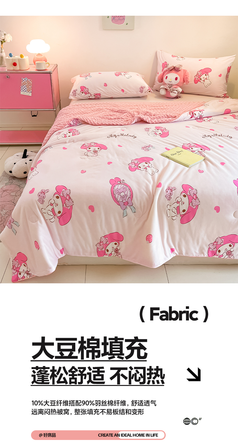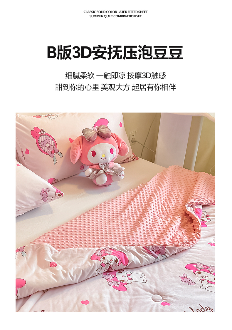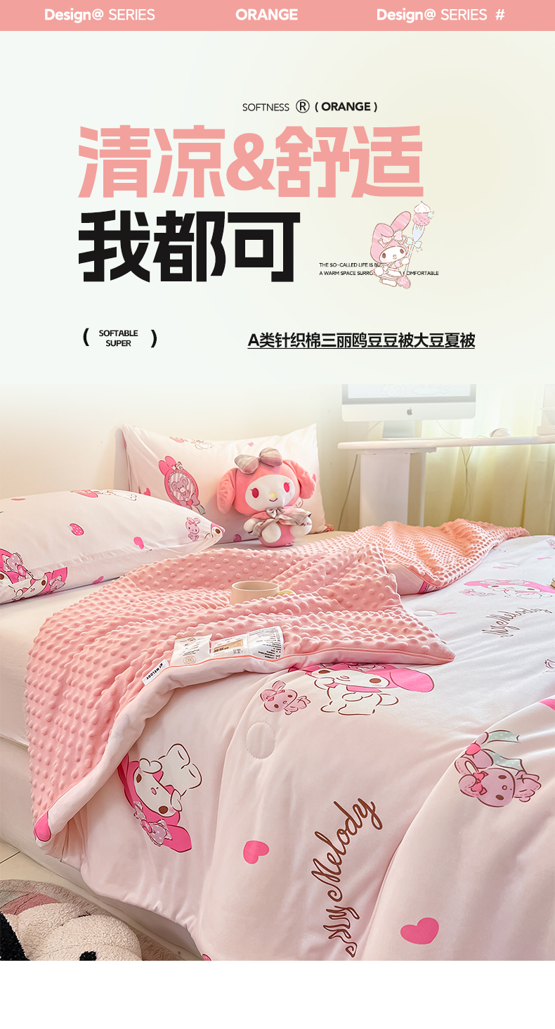 商品名称:莱登卡奴 2025春夏款A类针织棉三丽鸥豆豆被大豆夏被 甜心美乐蒂