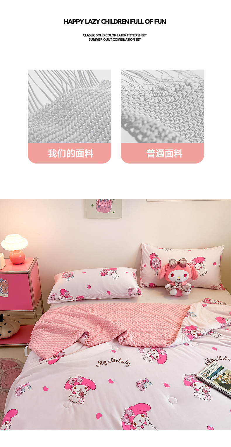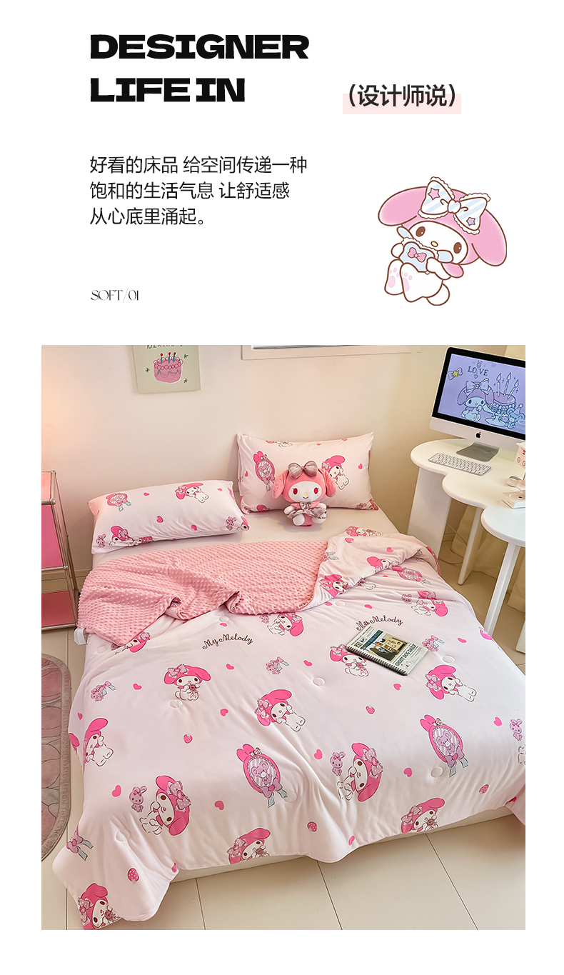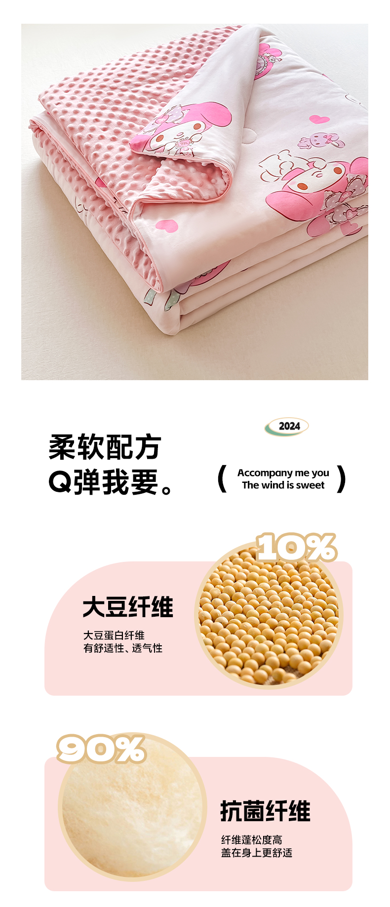 商品名称:莱登卡奴 2025春夏款A类针织棉三丽鸥豆豆被大豆夏被 甜心美乐蒂