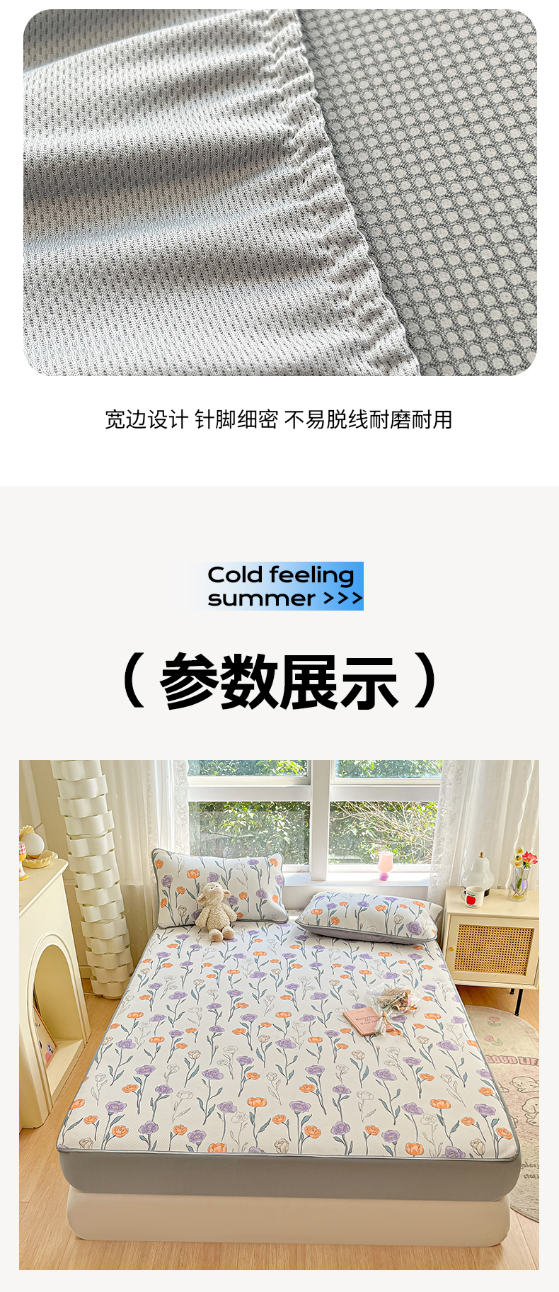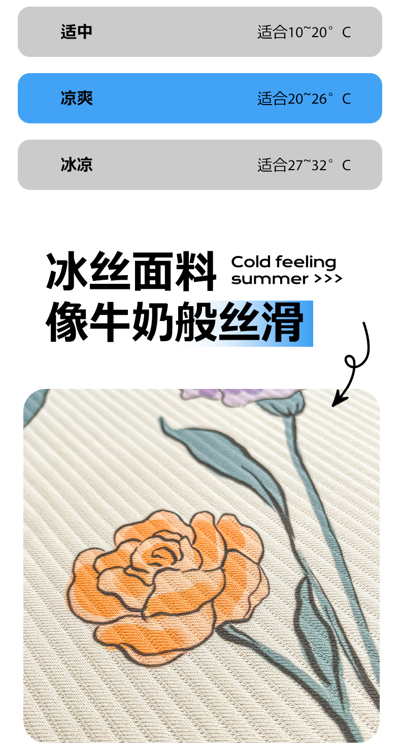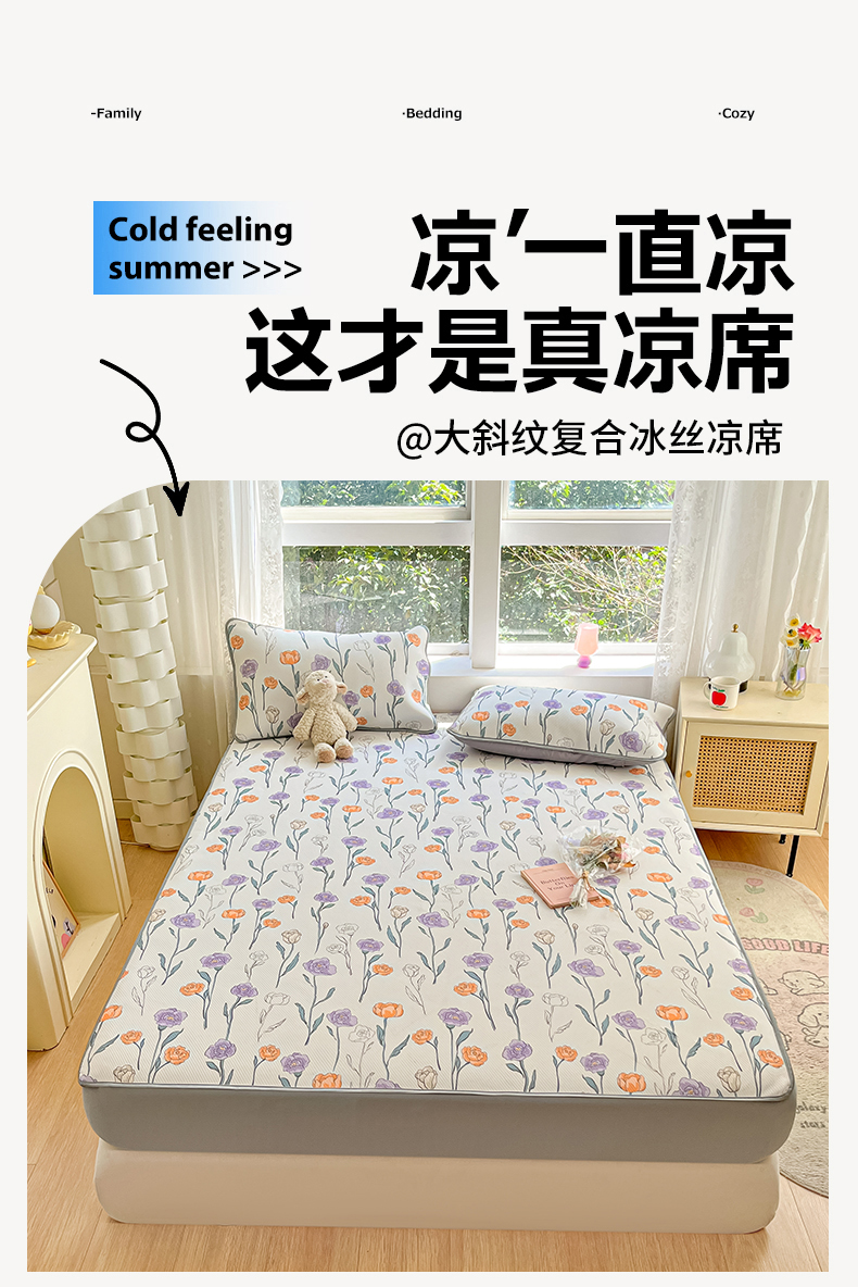 商品名称:星座 2025大斜纹复合冰丝凉席床笠款 恋恋花语-床笠款