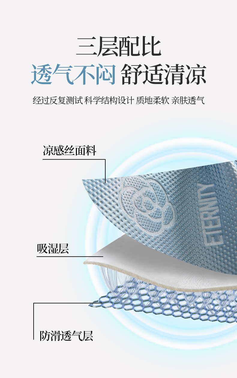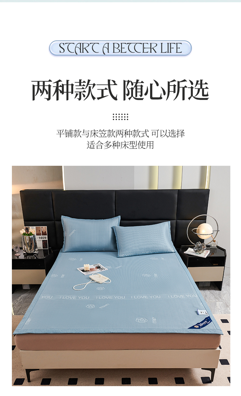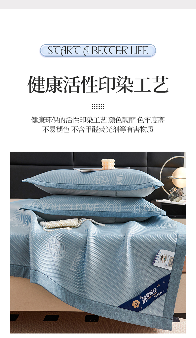 宜派家纺 2024新款凉感丝刺绣凉席三件套 小花-蓝-床笠