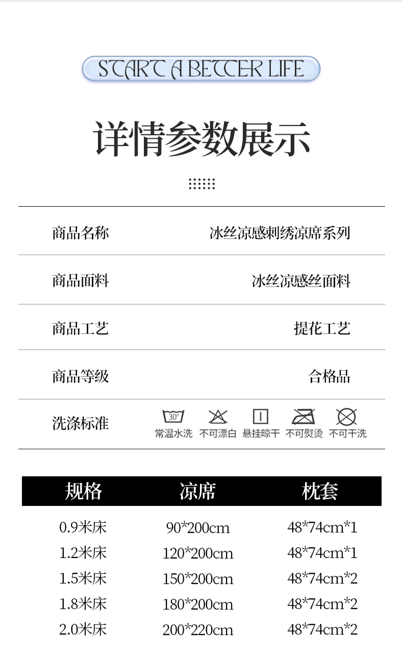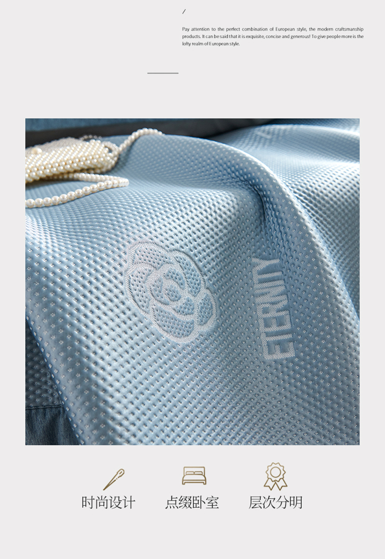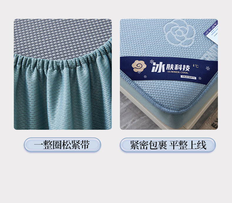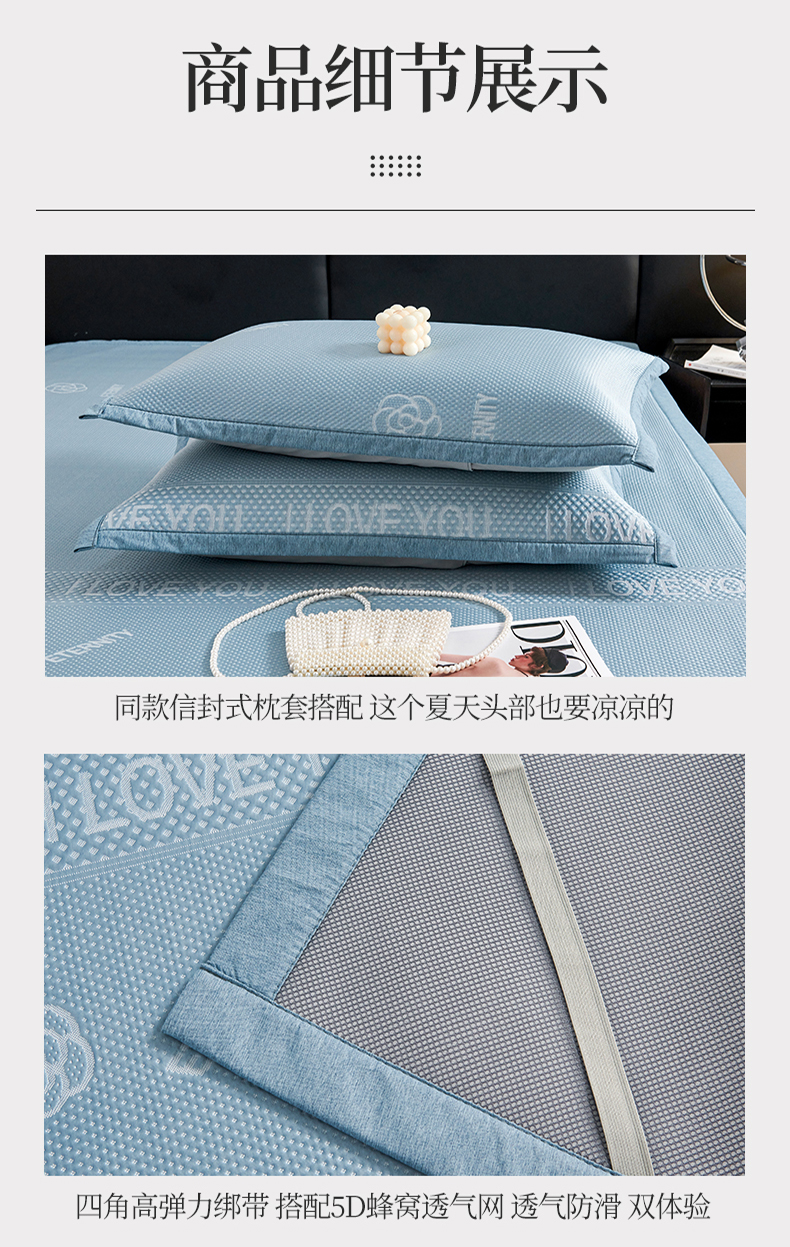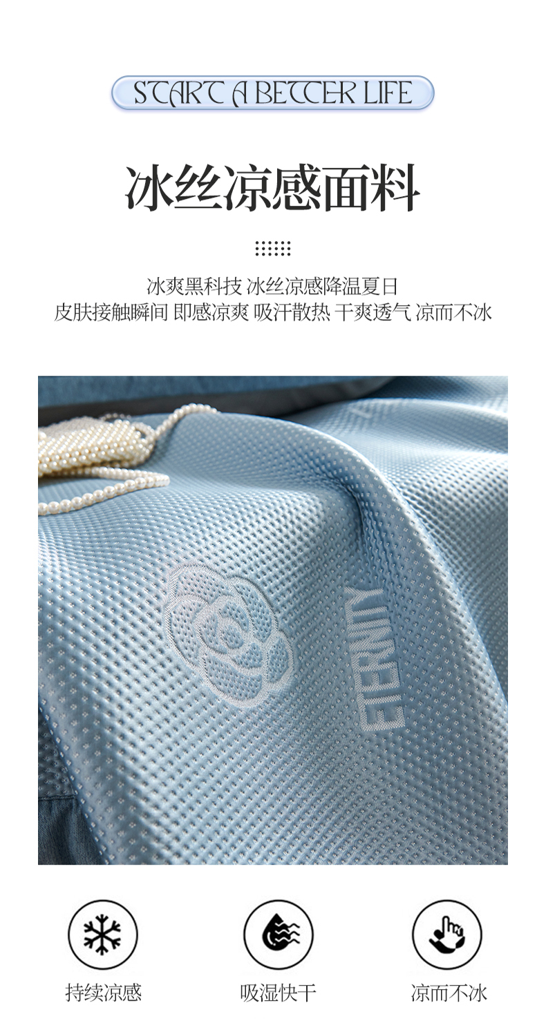 商品名称:宜派家纺 2024新款凉感丝刺绣凉席三件套 小花-蓝-床笠