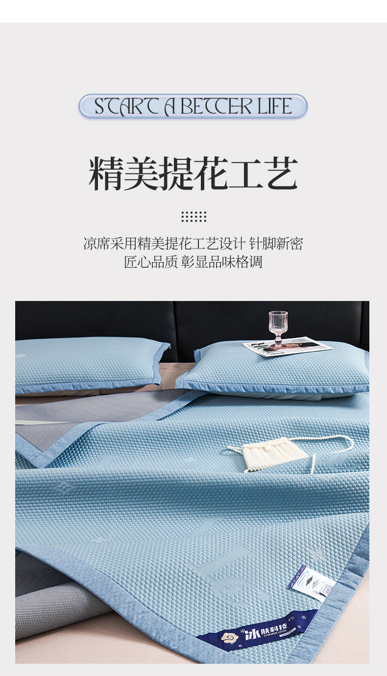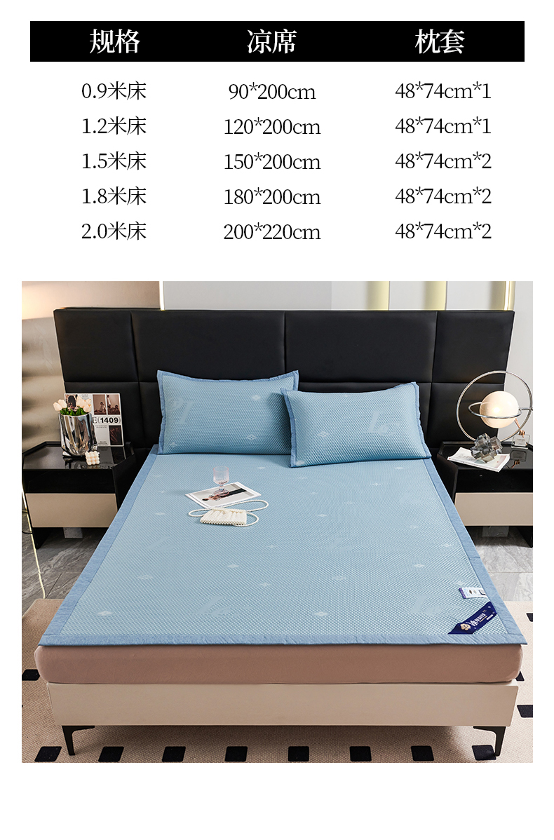 宜派家纺 2024新款凉感丝刺绣凉席三件套 LC-蓝-床笠
