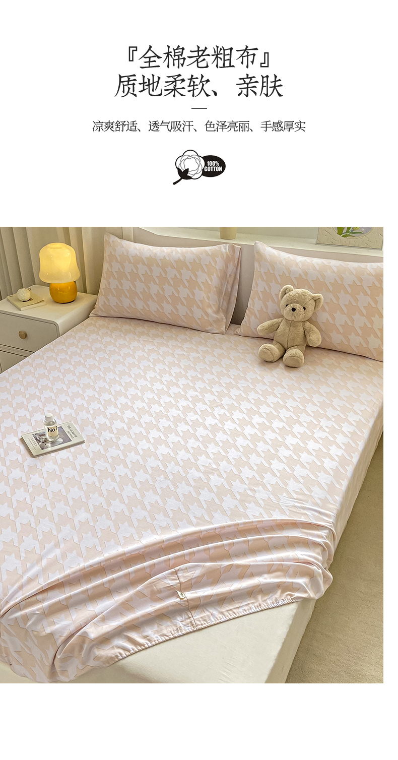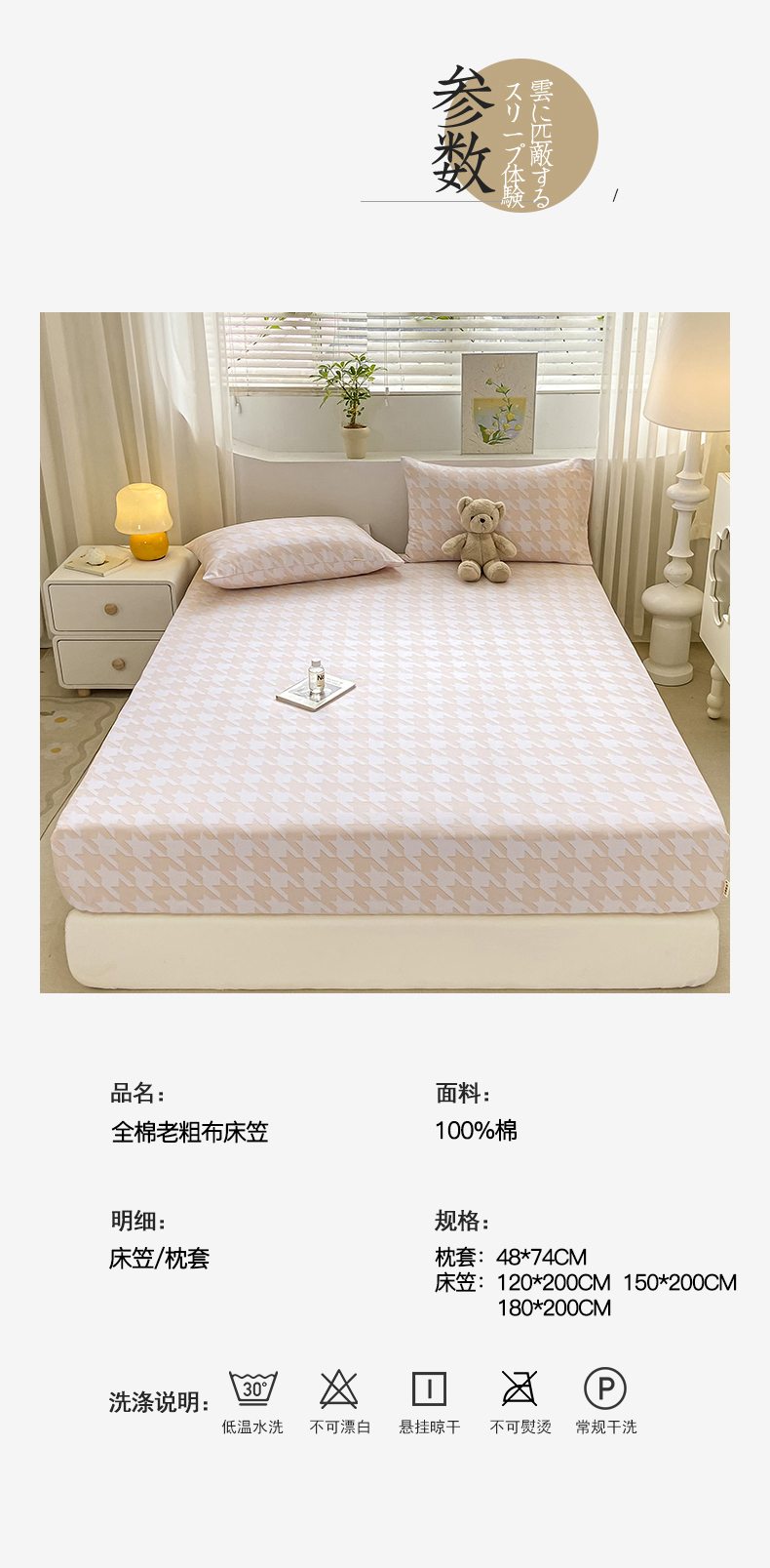 • 91家纺网 家纺一手货源 找家纺 2024新品全棉老粗布单品床笠系列 千鸟格-米