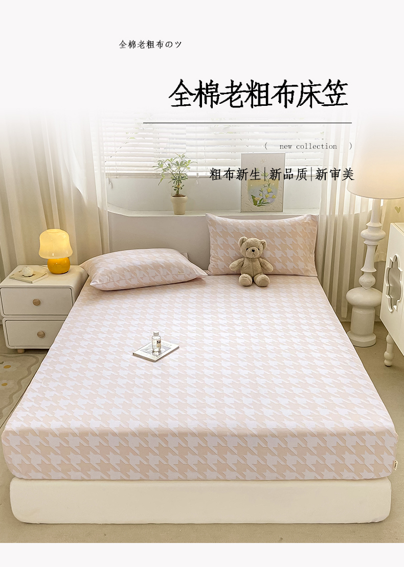 2024新品全棉老粗布单品床笠系列 千鸟格-米