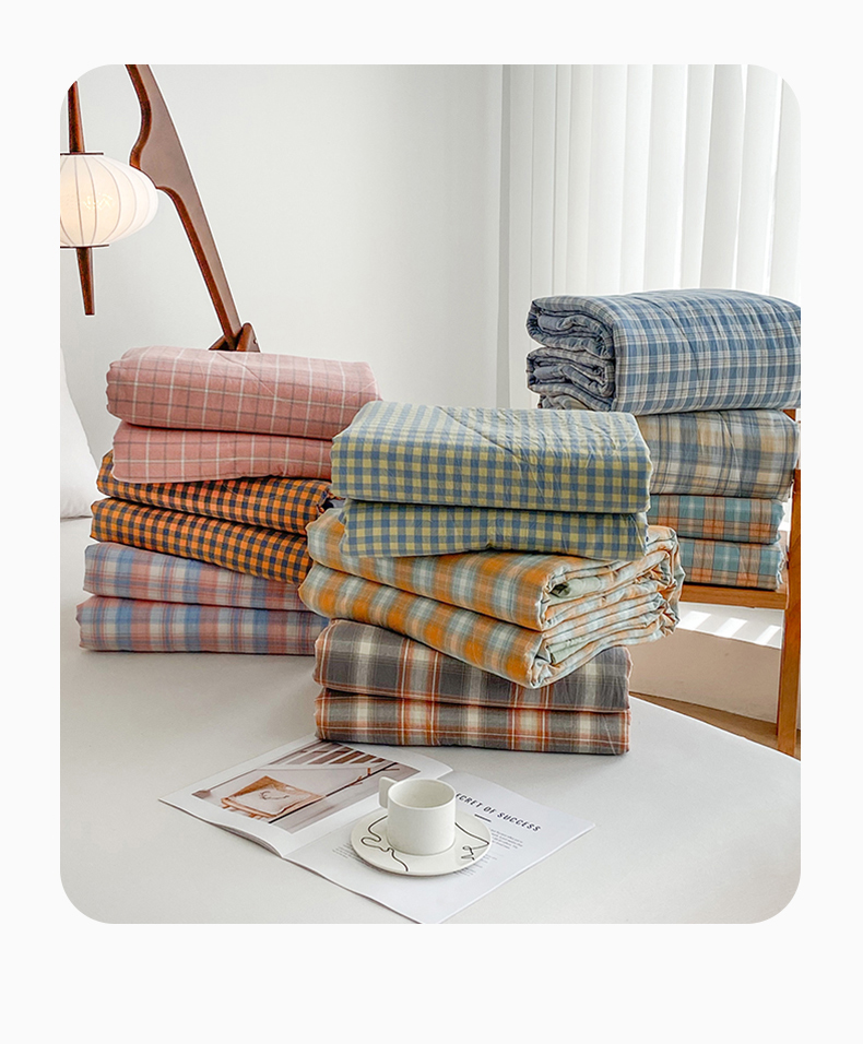 (总)青螺2024全棉水洗棉双面色织100%新疆棉花夏被四件套,宝莉小格,芳华兰,格森 橘,格森 兰,凯瑟琳 粉,洛卡 灰,沐夏,乔治 兰,星空粉,星空米