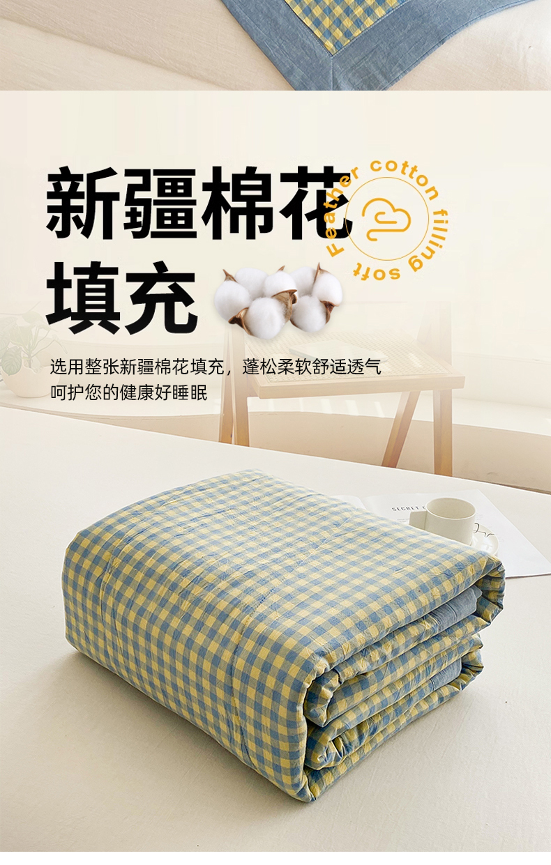 青螺家纺 双面全棉色织水洗棉新疆棉花被百分百(支持质检)格森兰