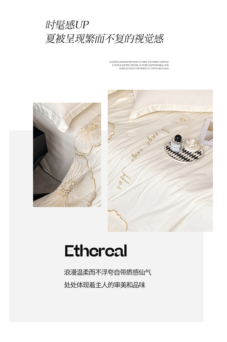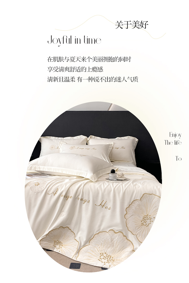 2025新款花开盛夏夏被四件套 花开盛夏-奶白