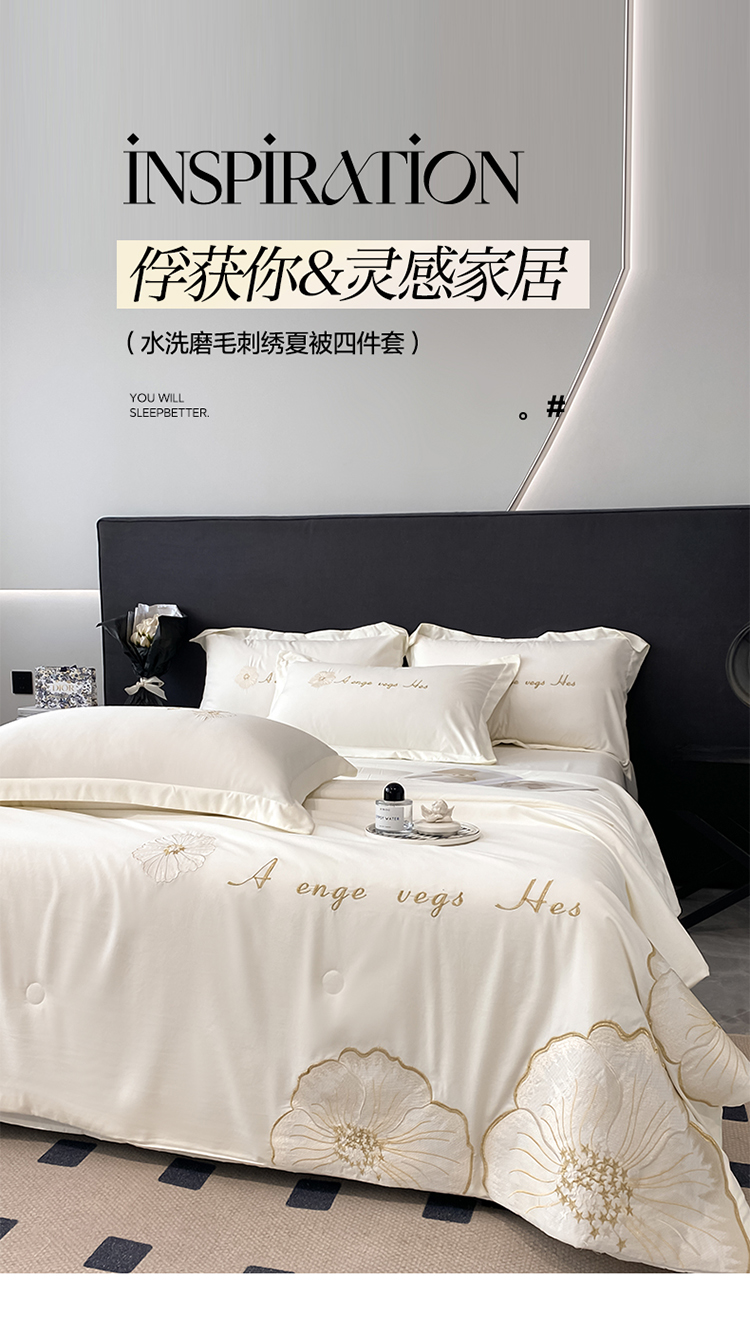 商品名称:2025新款花开盛夏夏被四件套 花开盛夏-奶白