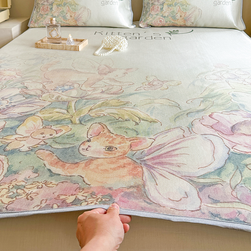 当前位置: 91家纺网 > 商品网购 > 床上用品 > 凉席 > 冰丝席 > 萝莉家纺 2024新款大版印花冰丝凉席床席床笠款 小猫咪的花园-平席款