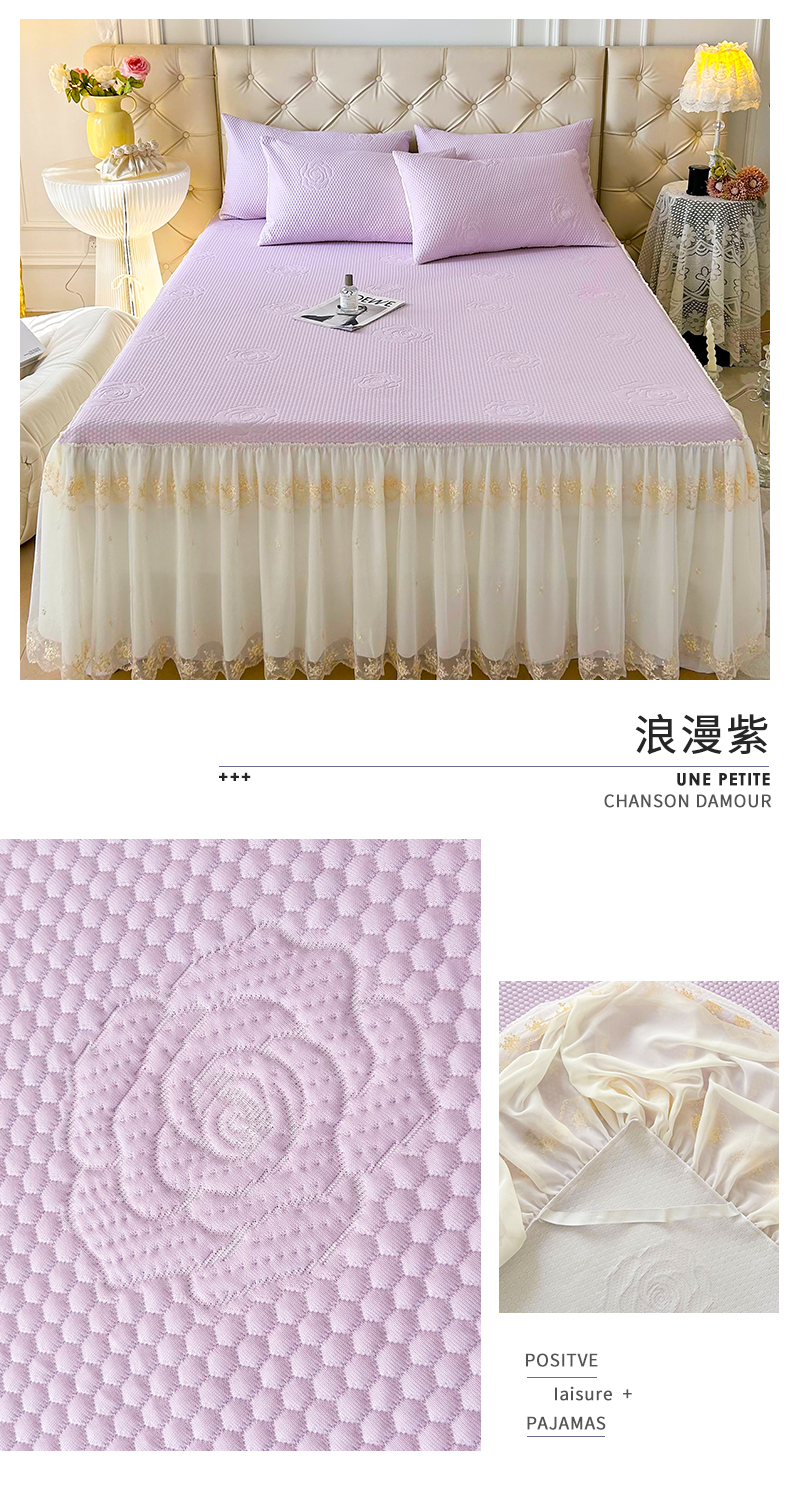 商品名称:恒爱A类冰丝豆豆床裙款国色天香系列凉席 浪漫紫
