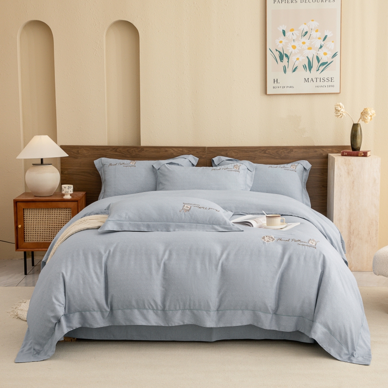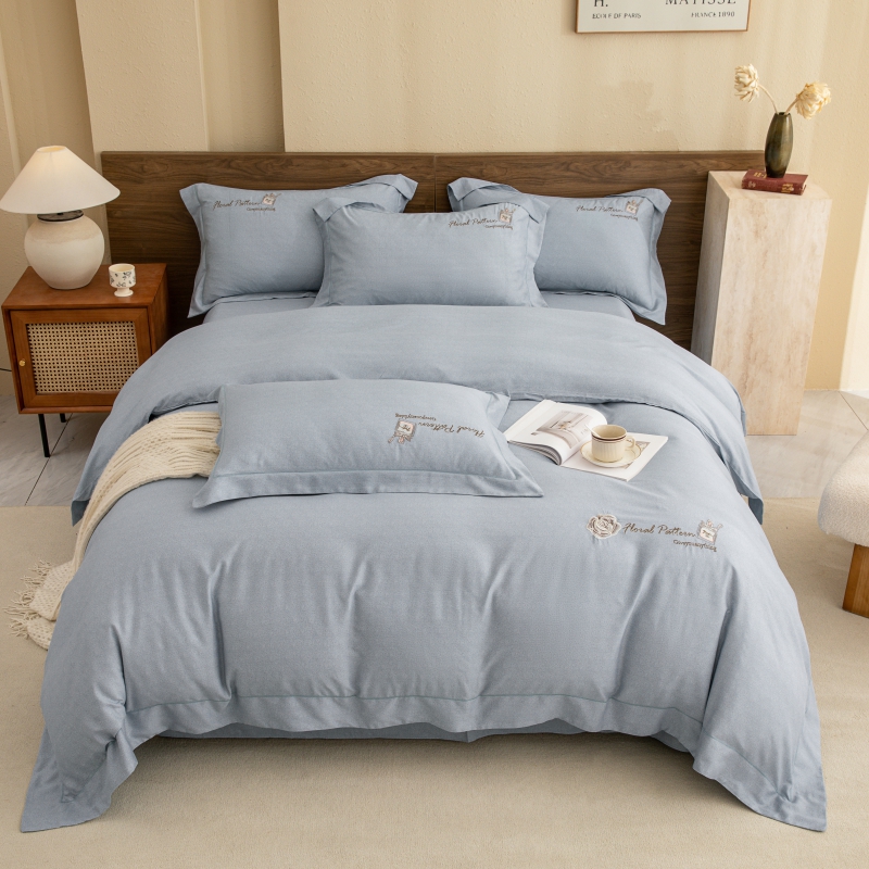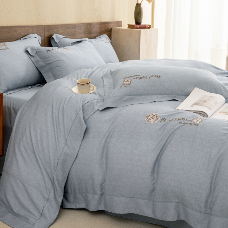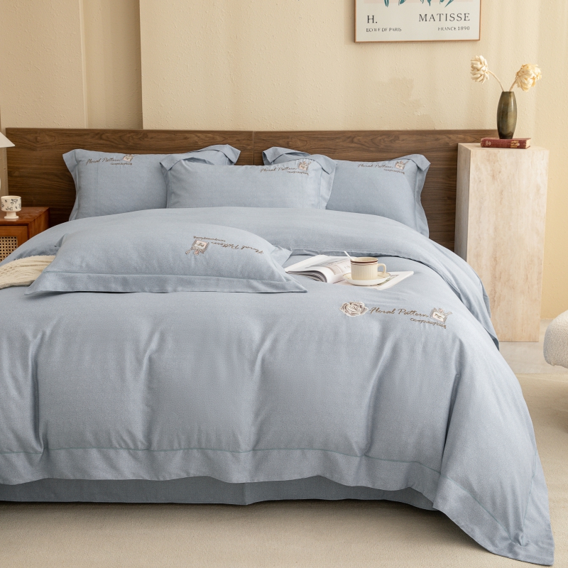 (总)绒博士 2025新款270克牛奶绒双拼角刺绣宽边款四件套--维也纳系列,维也纳-粉豆沙,维也纳-果绿,维也纳-浅咖,维也纳-浅蓝