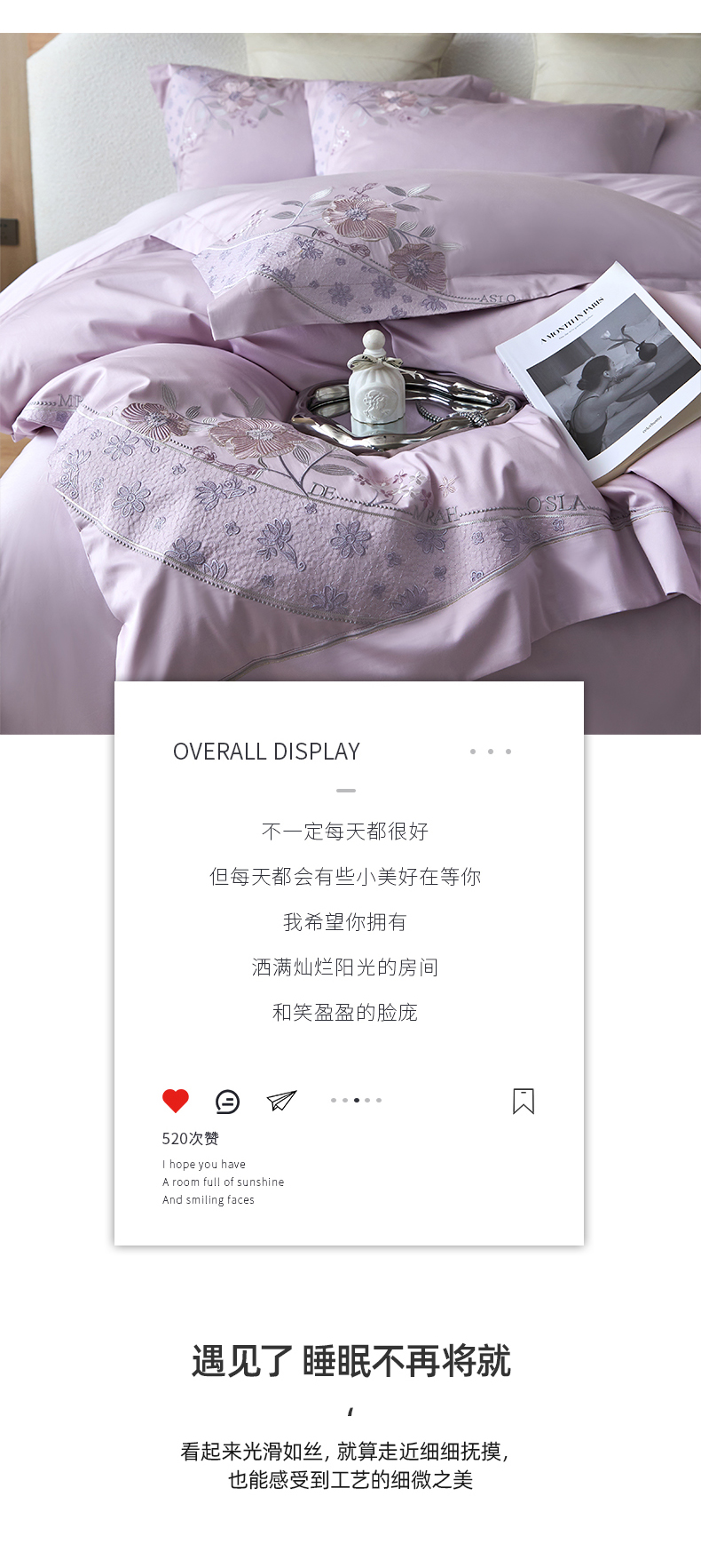 商品名称:红番天家居馆 2025新款长绒棉全棉绣花四件套--花间意境系列 海葵紫