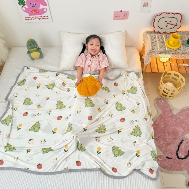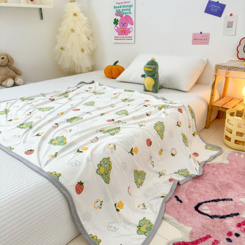 星期八 2024新款舒适亲肤婴儿裸睡级卡通印花凉感毯 小恐龙
