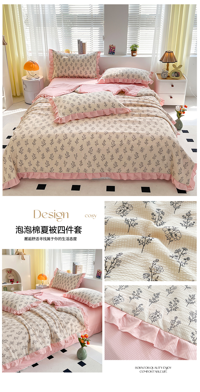 商品名称:富之航 2024新款时尚舒适泡泡棉夏被四件套叶苏