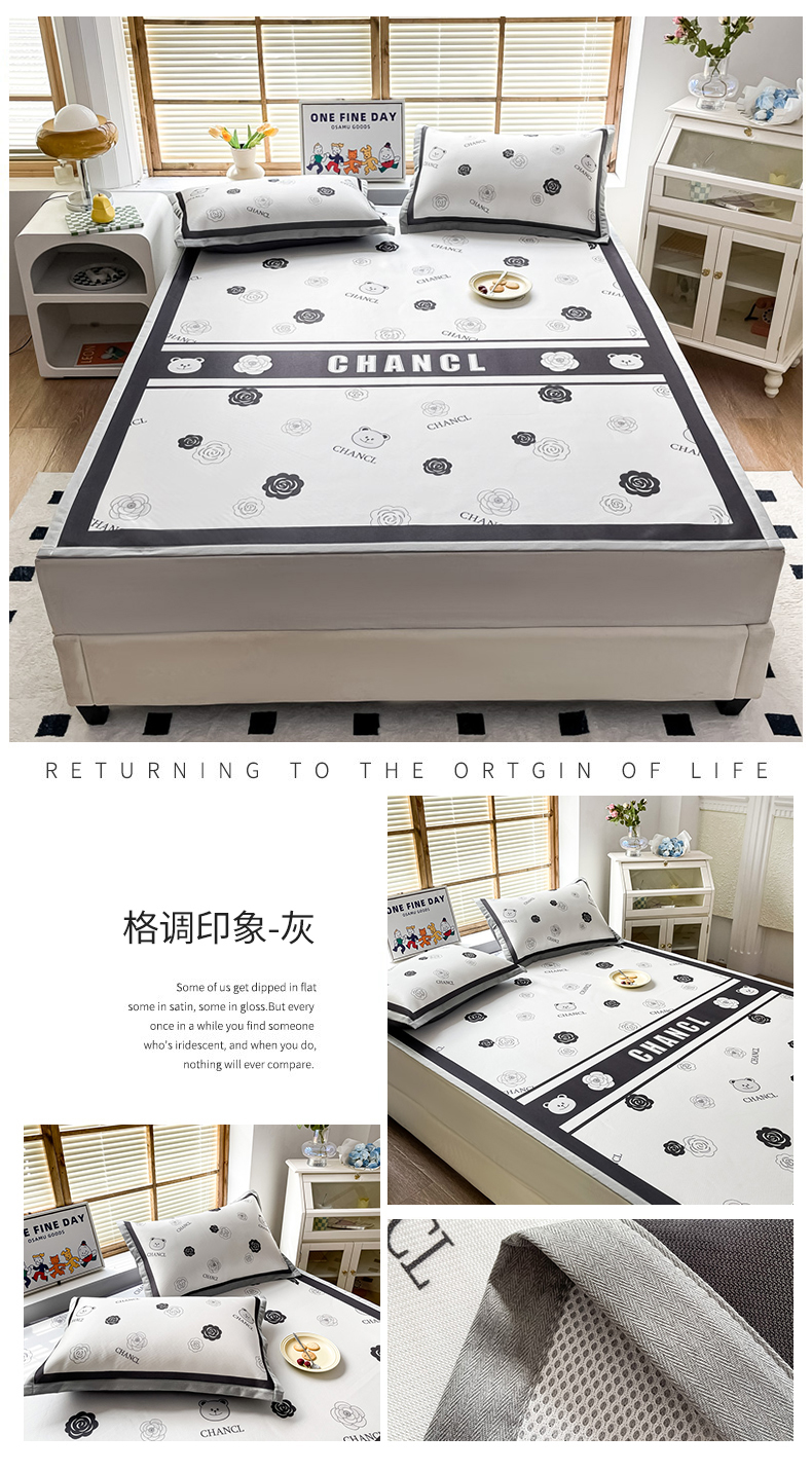 • 91家纺网 家纺一手货源 找家纺 栩裕纺织 2025款数码印花1200D碳光牛奶冰丝凉席 格调印象-灰